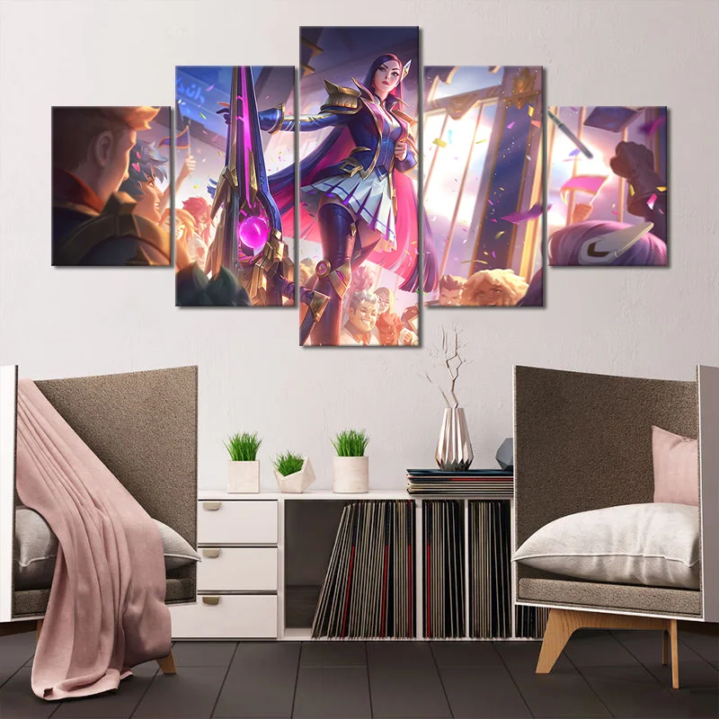 Модульные картины с аниме Akali KDA LOL, 5 панелей, HD принты, плак...