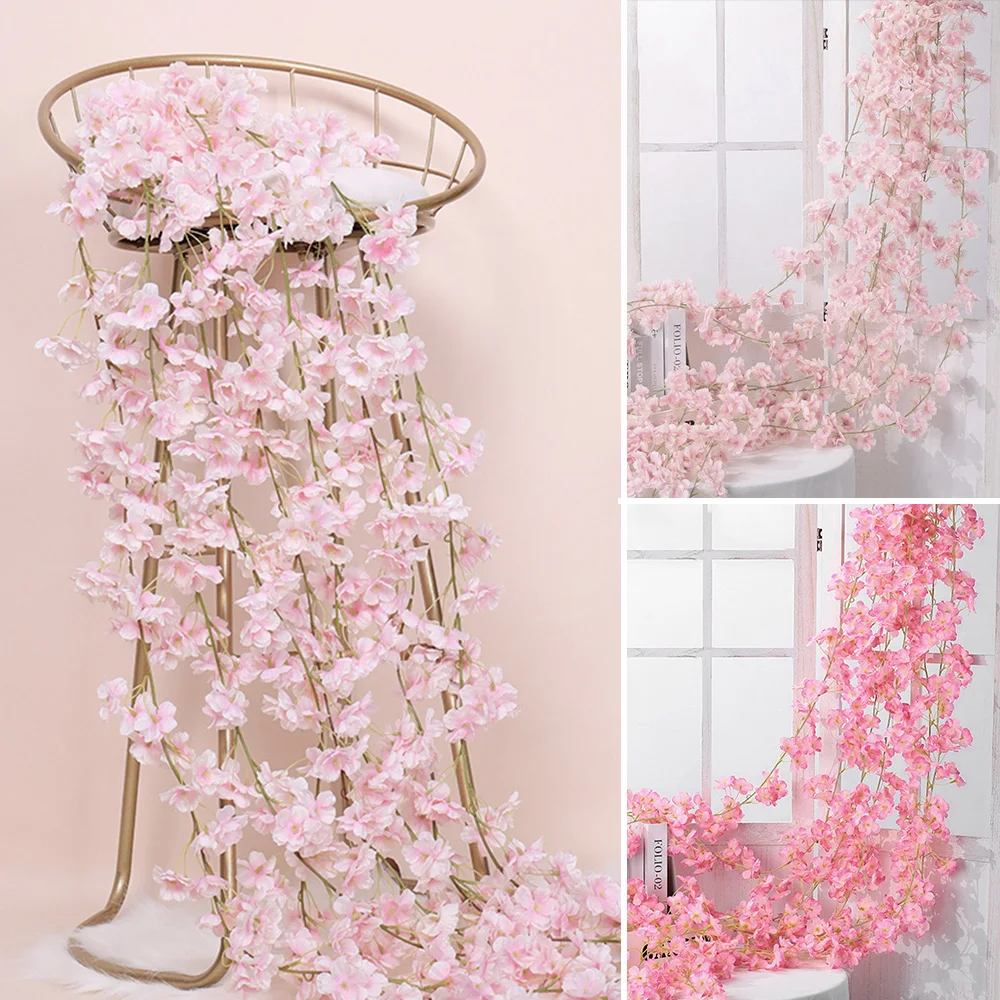 1,8 м искусственные цветки вишни ротанг, искусственные Цветочная Гирлянда цветок Плющ шелк Сакура строка висит Свадебная вечеринка домашний декор