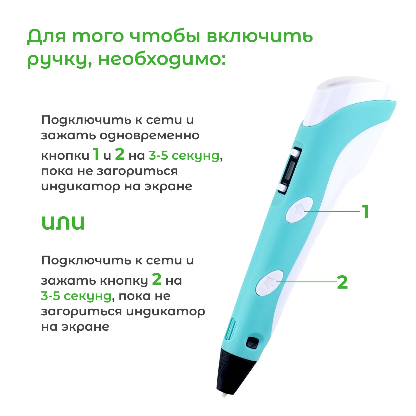 Если нужна качественная, эргономичная, недорогая 3Д ручка для детей,оформляйте заказ прямо сейчас. Мы предлагаем вам доступный по цене, симпатичныйгаджет с удобным дисплеем. Питание сетевое. Стоимость совсем невысокая, так чтоэто хороший вариант для экспериментов. Нитей в комплекте нет – их нужно будетзаказывать отдельно.