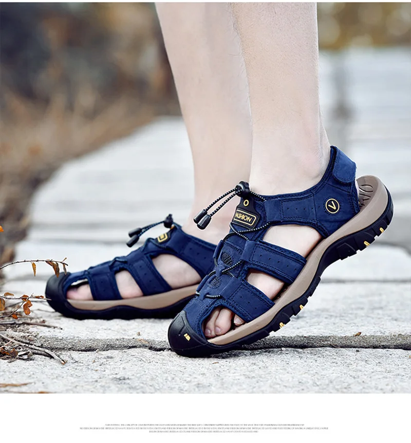 Уличная походная обувь, мужские сандалии для альпинизма из натуральной кожи, дышащие Нескользящие треккинговые кроссовки, обувь для Аква-рыбалки, большой размер 48