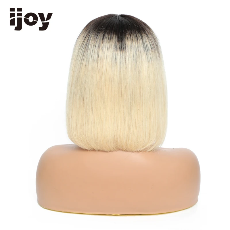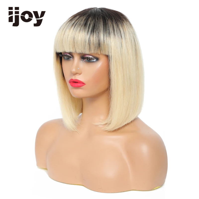 Парик из натуральных волос с челкой, прямой парик Боб, цветной Омбре, 613 блонд, бразильские волосы, полностью машинные парики для женщин, не Реми IJOY