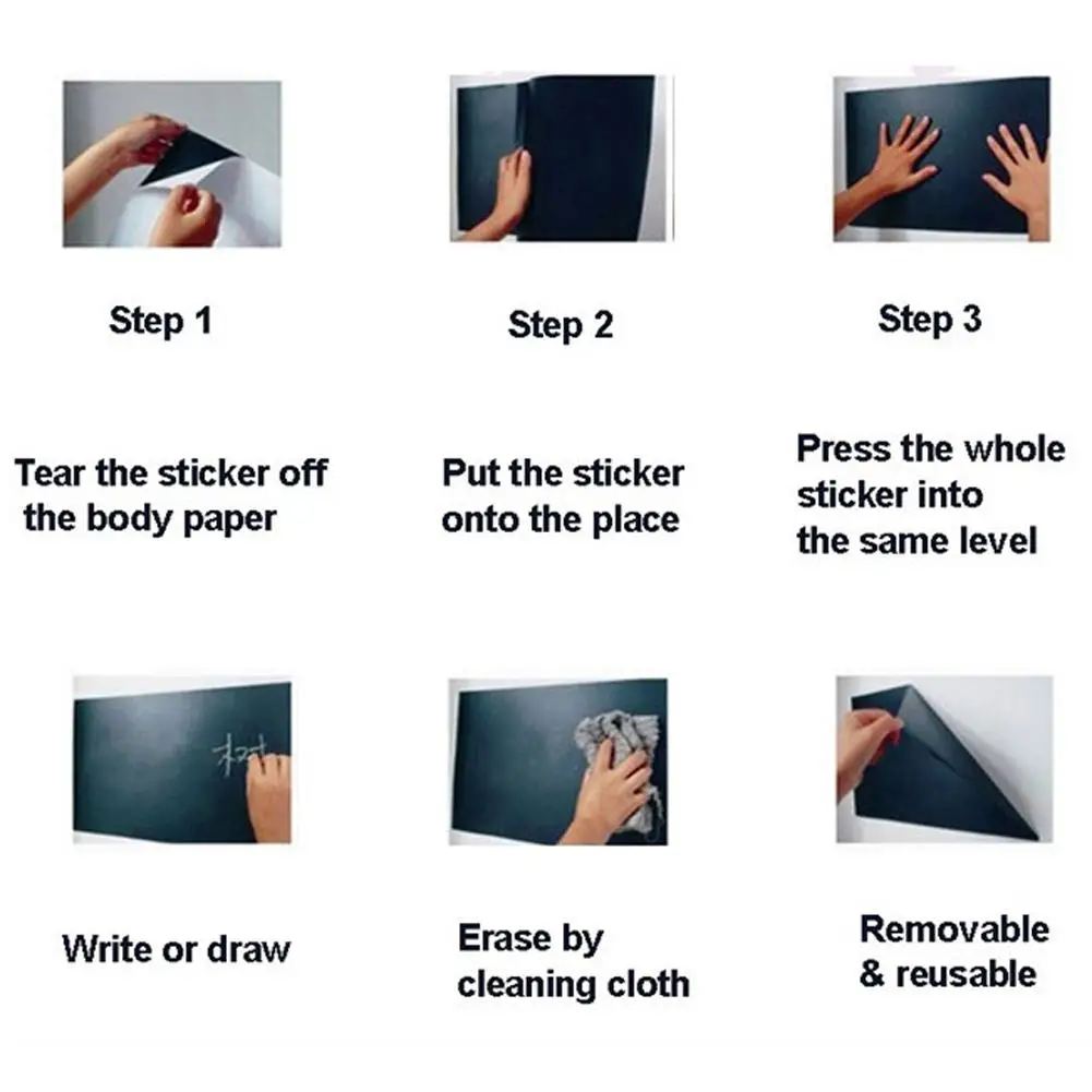 Особенности:1. Это необходимый инструмент для обучения студентов, классных комнат и семейного обучения.2. С хорошей липкостью и гладкой поверхностью.3. Это обычный Мел для письма. Мы можем протереть его влажной тканью, чтобы она была чистой и не содержащей пыли.Характеристики:Цвет: черныйРазмер: 200*60 см/78,74*23,62"Материал: ПВХКоличество: 1 шт. наклейка на доску, 5 шт. случайные цвета мелкиПримечания:1. Из-за различных настроек монитора и светильник эффект, фактический цвет элемента может быть s светильник ly отличается от цвета, представленного на снимках. Спасибо!2. Возможны отклонения в 1-3 см вследствие измерений вручную.Упаковка:1 х стикер для доски5 халков