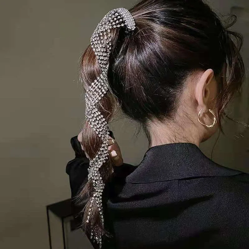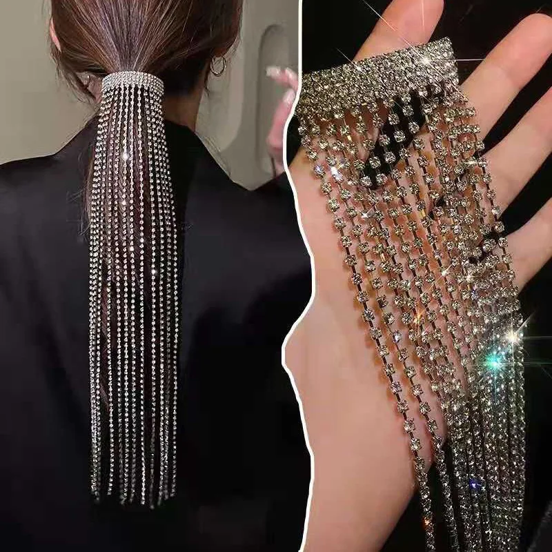 Заколки для волос с длинной цепочкой и кисточками для женщин и девочек, полные стразы, 2021