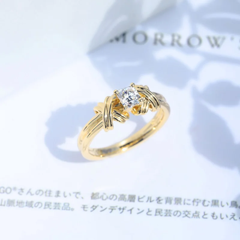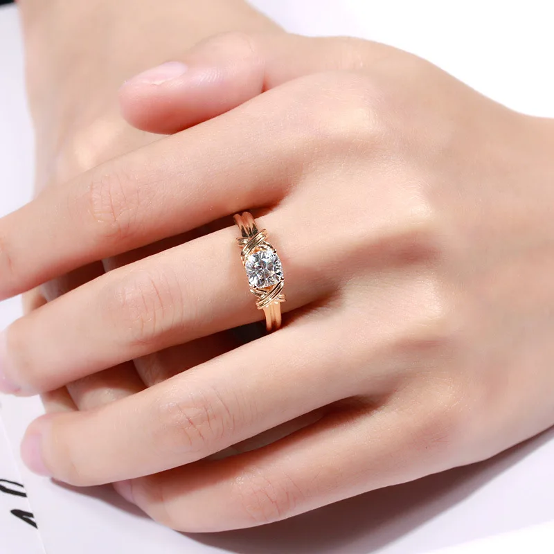 Модное геометрическое плетеное металлическое кольцо для женщин, сплав, розовое золото, серебро, хрустальные кольца, женские украшения для свадьбы, помолвки, вечевечерние