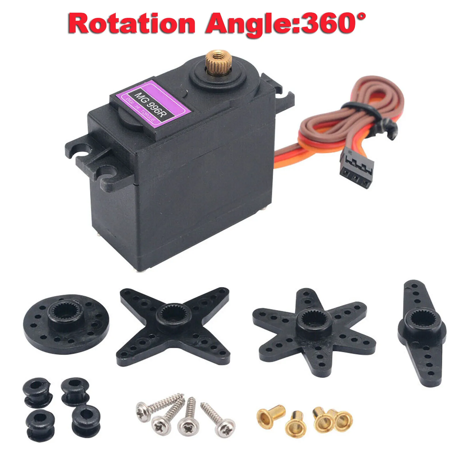 Отлично подходит для грузовиков, Лодка, гоночный автомобиль, вертолет и самолет. Источник питания: через Внешний адаптер. Устойчивый и ударопрочный. Бескаркасный двигатель, металлическая шестерня. Двойной шариковый подшипник Рабочая скорость: 0.17sec / 60 градусов (4,8 V без нагрузки) Рабочая скорость: 0,13 сек/60 градусов (6,0 В без нагрузки) Угол поворота: 360 °Спецификация:
