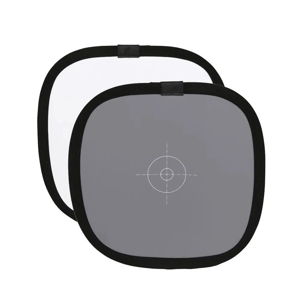 18% стандартный серый, одна сторона-серая доска, есть вспомогательные шкалы фокуса, а другая сторона-белая доска. Это хороший аксессуар для регулировки баланса белого, с несущей чехол.