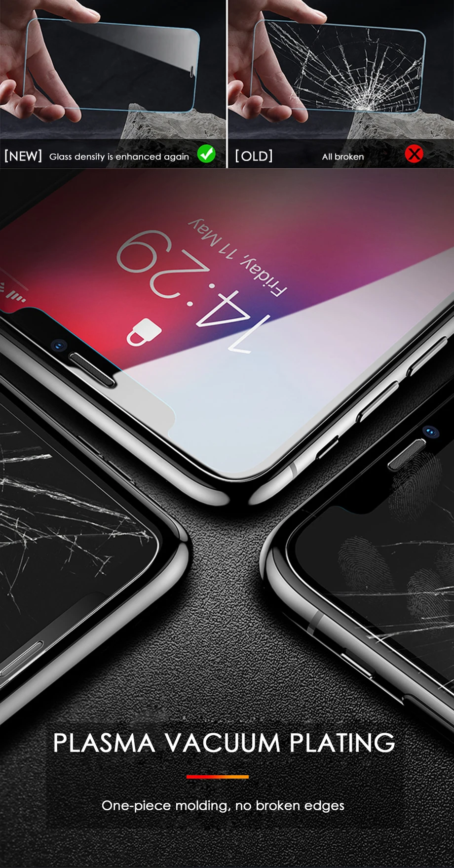 Стекло очень хрупкое, ломается от минимального падения на абсолютно ровный пол .