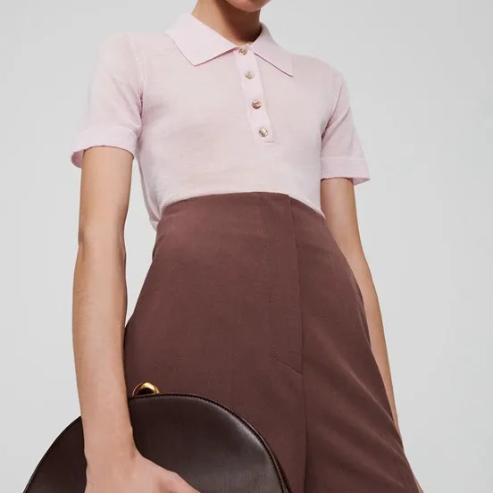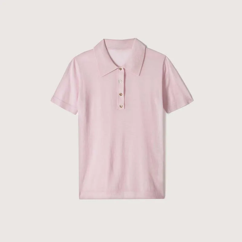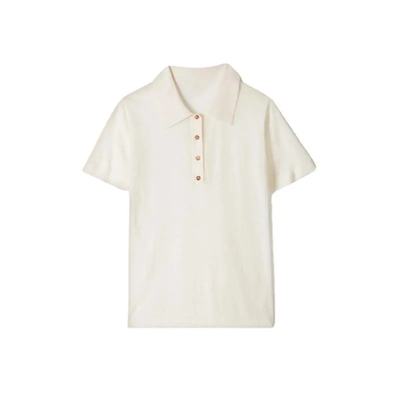 100% шерсть, Новинка лета 2021, модная однобортная универсальная Тонкая Повседневная футболка с коротким рукавом и отложным воротником