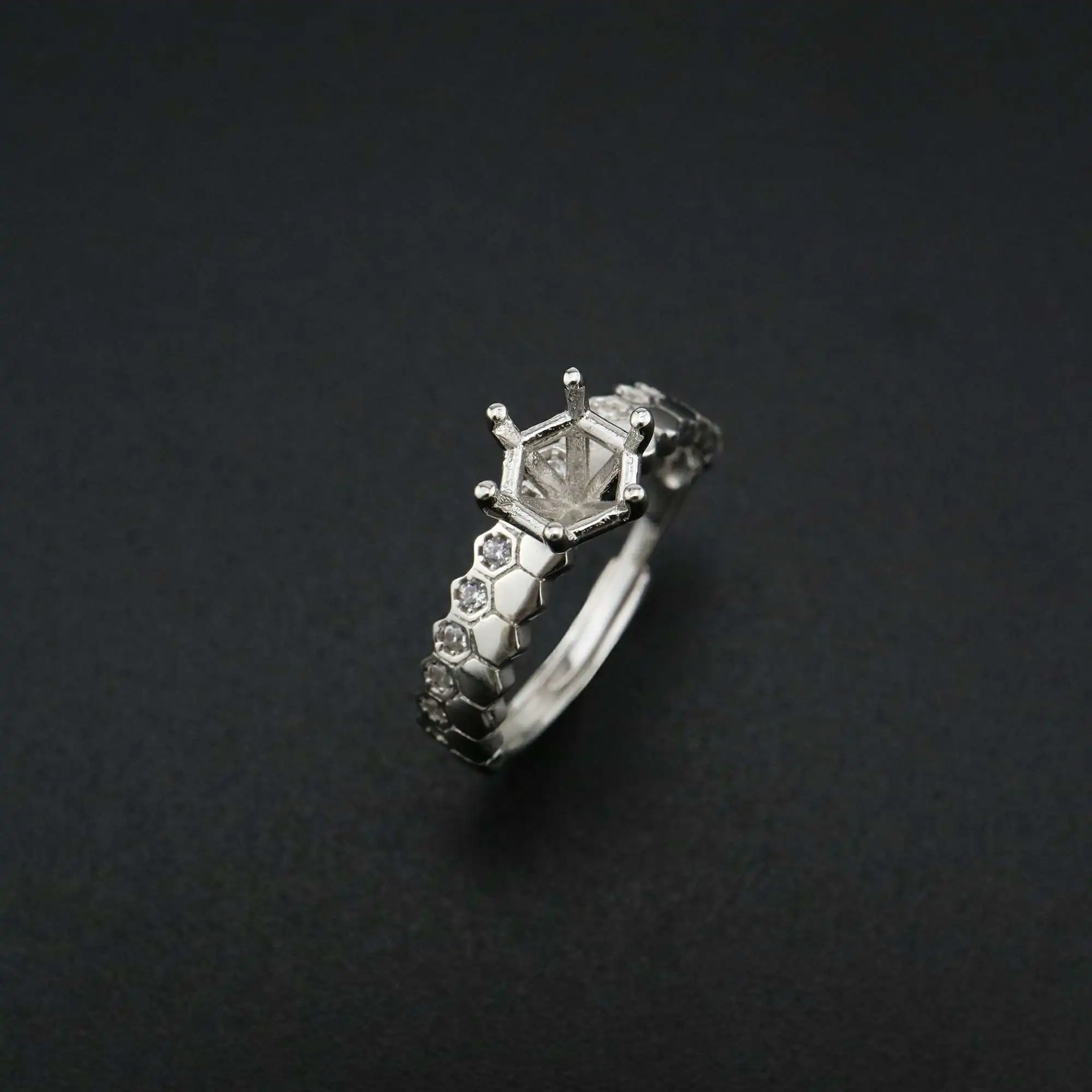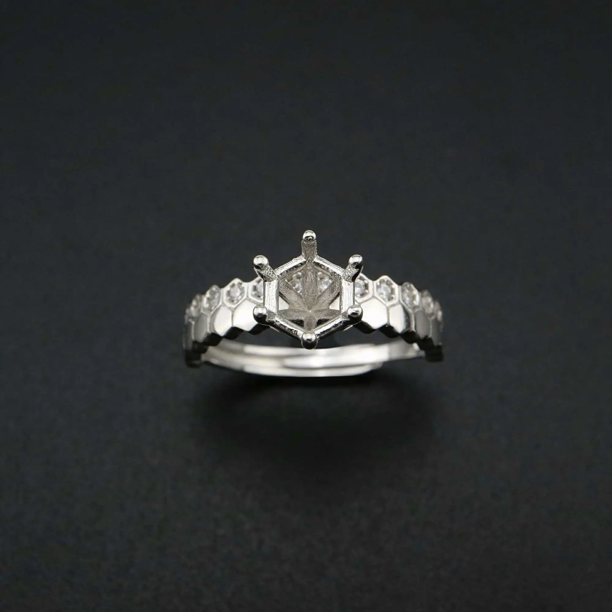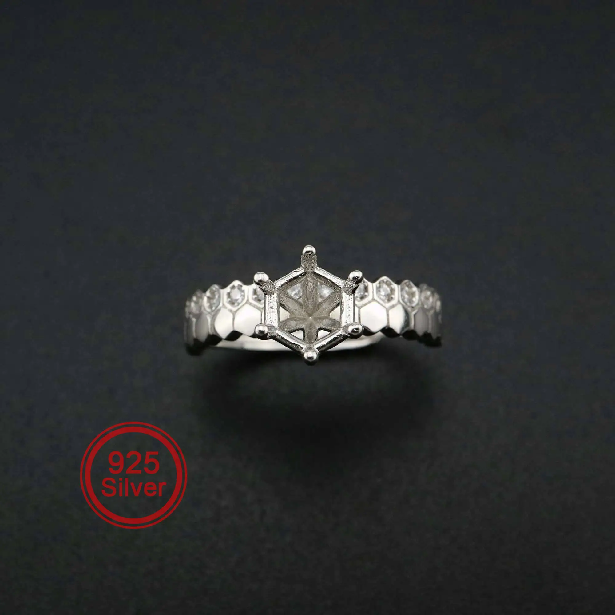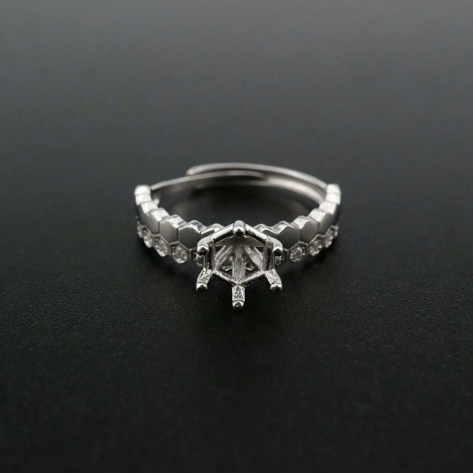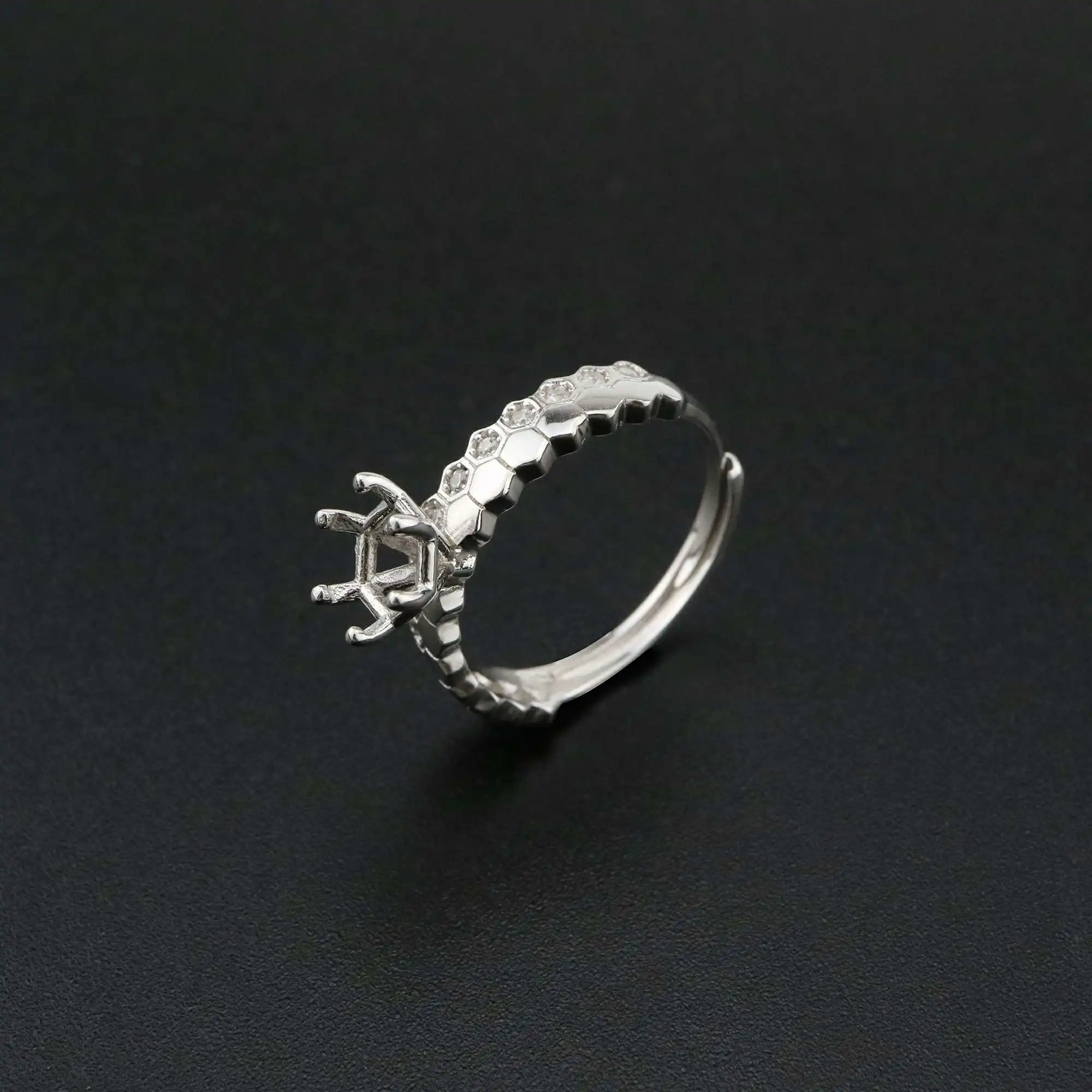 6,5 мм круглый ободок закрепки Косынка шестигранный хвостовик сплошной 925 пробы серебряные регулируемые зубец параметры заготовки кольца заготовка волок для драгоценный камень 1212061