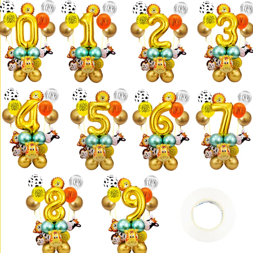 26 шт.компл. 0-9 набор воздушных шаров в виде цифр, джунглей, зоопа...