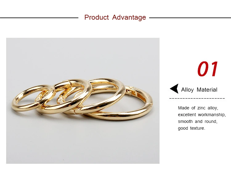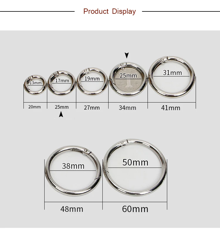 Характеристика: Изготовлен из тонкого мастерства и качественного материала, прочный в использовании, с гладкими краями, простой в установке и использовании. Металлическое открывающееся кольцо, кольцо для ключей, сумка, фурнитура, кольцевая пряжка.