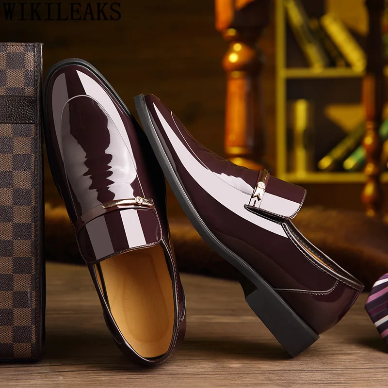 Мужские Лоферы класса люкс мужские дизайнерские Туфли под платье кожаные мужская деловая обувь черные офисные туфли для мужчин Лакированная кожа с волнообразным краем; Zapatos De Vestir Hombre