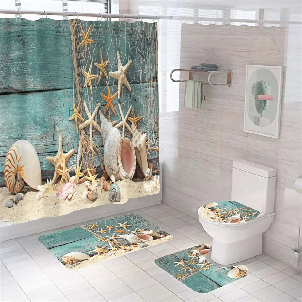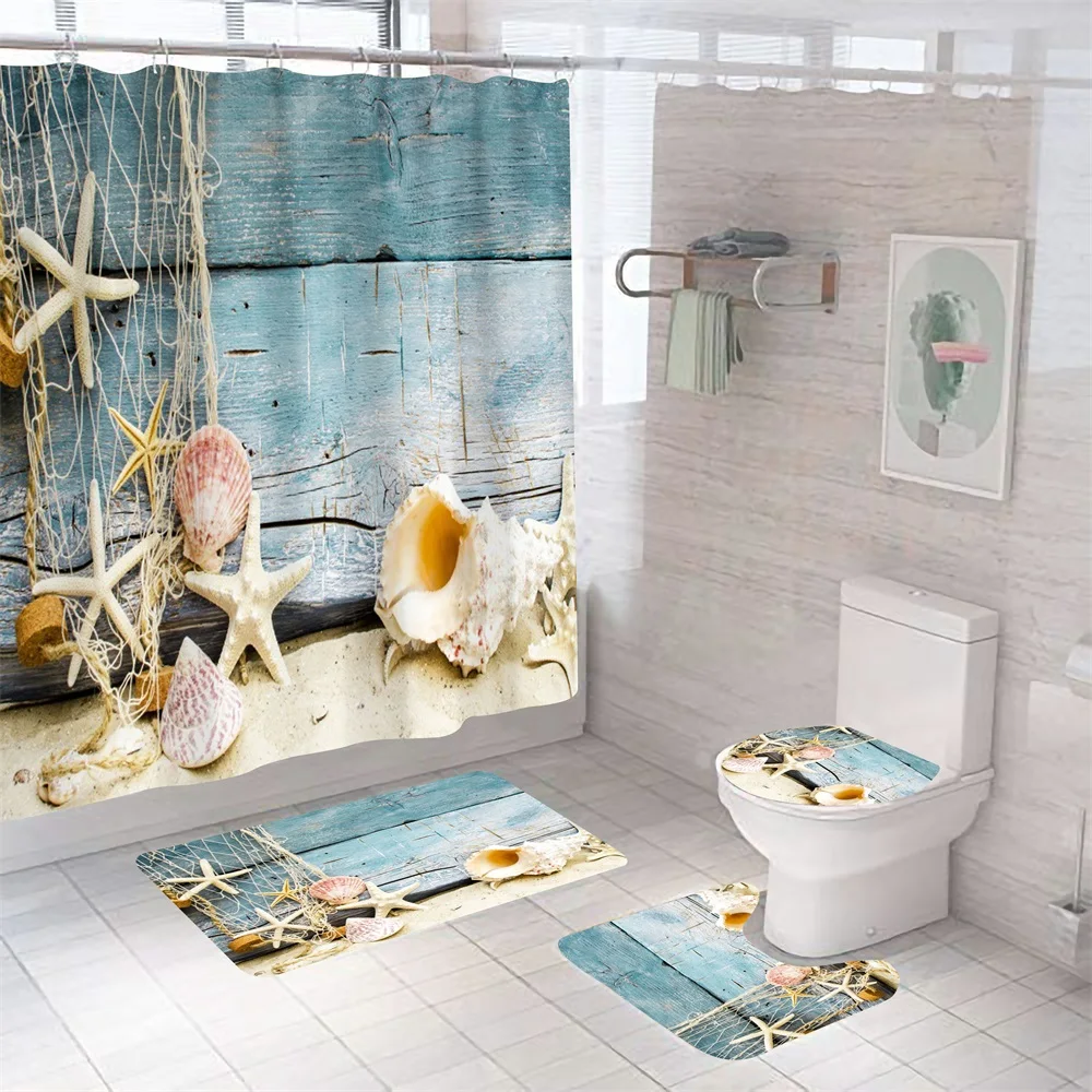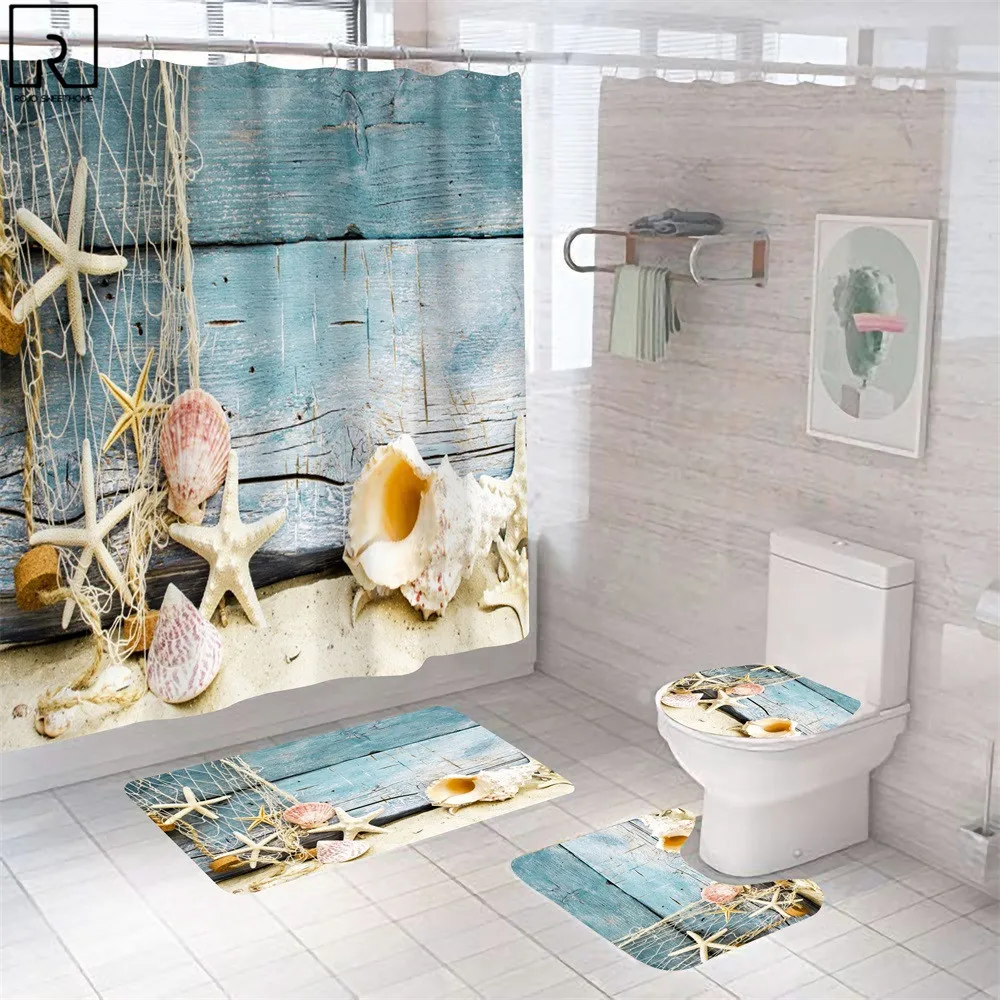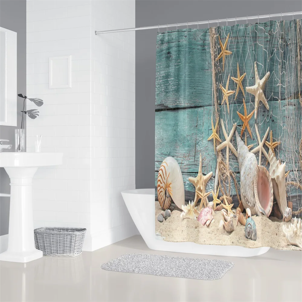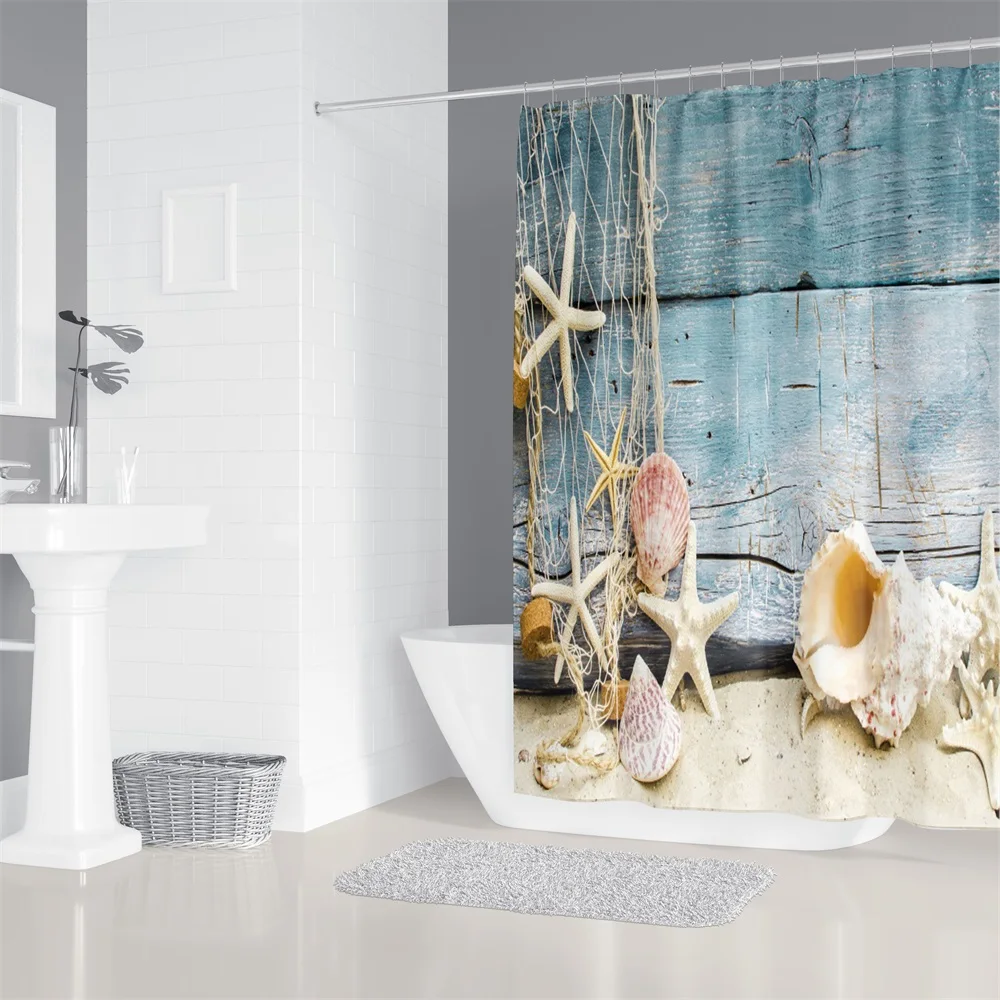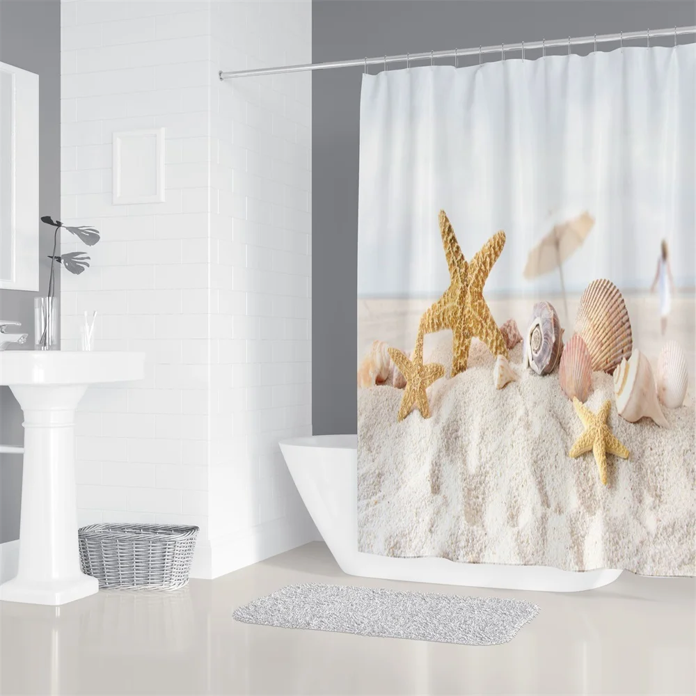 Пляжный Пейзаж раковину 3d печати Душ Шторы полиэфирная перегородка ванной домашний декор, занавеска для окон Шторы Ванная комната Шторы набор