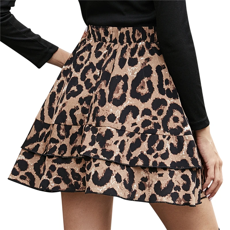 Женская леопардовая мини-юбка с завышенной талией, трапециевидная свободная летняя повседневная юбка с пуговицами, 2021