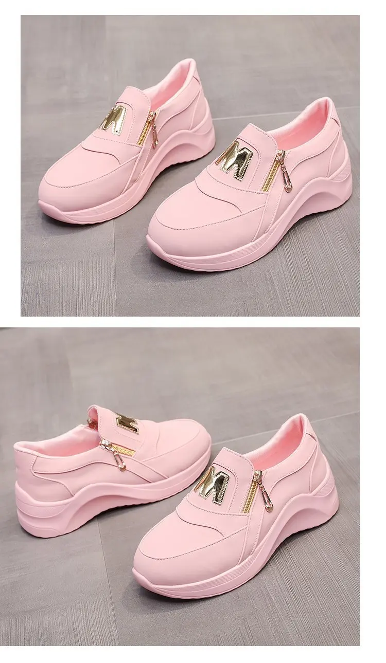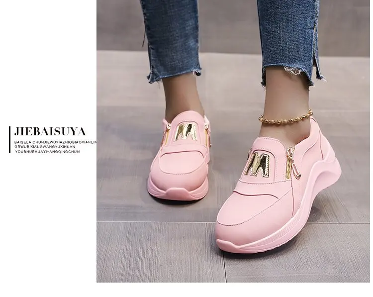 Женские белые кроссовки на массивной платформе, кроссовки на танкетке для женщин, уличные спортивные кроссовки розового цвета, удобные женские туфли
