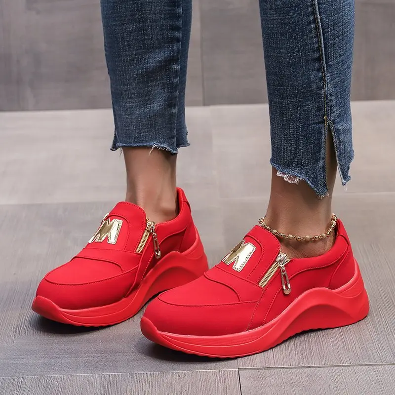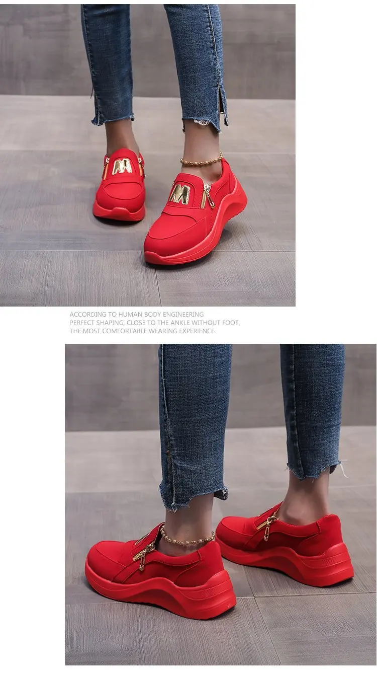 Кроссовки на танкетке для женщин, Вулканизированная подошва, на тол...