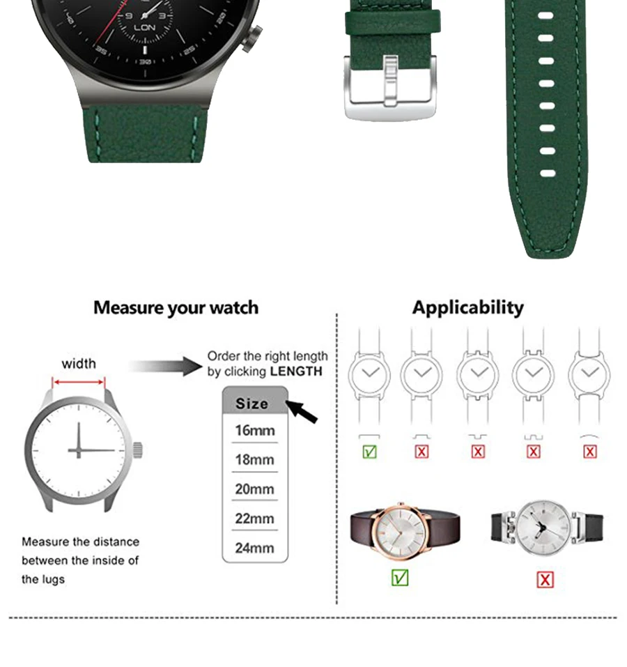 Ремешок кожаный для часов huawei watch gt 2 pro, браслет для samsun...