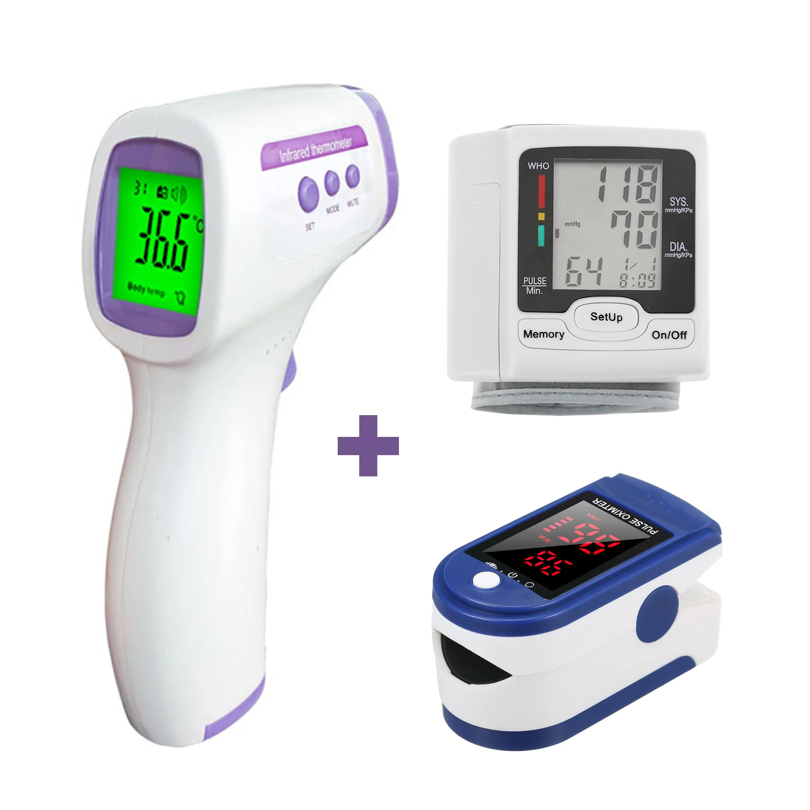 Тонометр на запястье, сфигмоманометр, монитор артериального давления + цифровой термометр для лба + измеритель уровня кислорода в крови, Пульсоксиметр