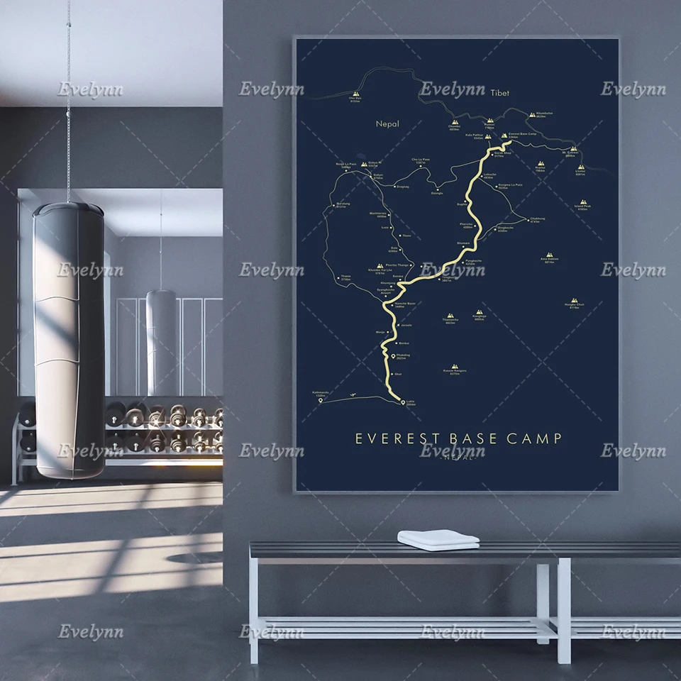 Everest базовый лагерь Trek плакат EBC Trail карта Everest базовый лагерь Пеший Туризм Непал Trail карта современного искусства принты для домашнего декора Холст