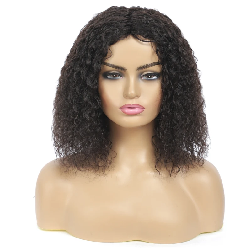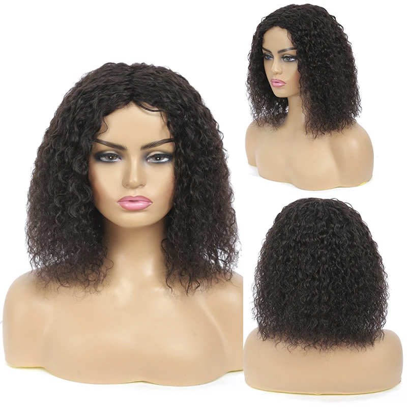 Парик из человеческих волос короткий боб для чернокожих женщин, парики с кудрявыми волосами средней длины, парики полностью изготовленные в стиральной машине естественного цвета