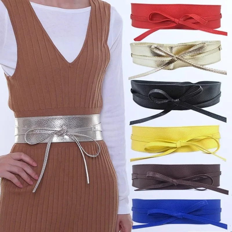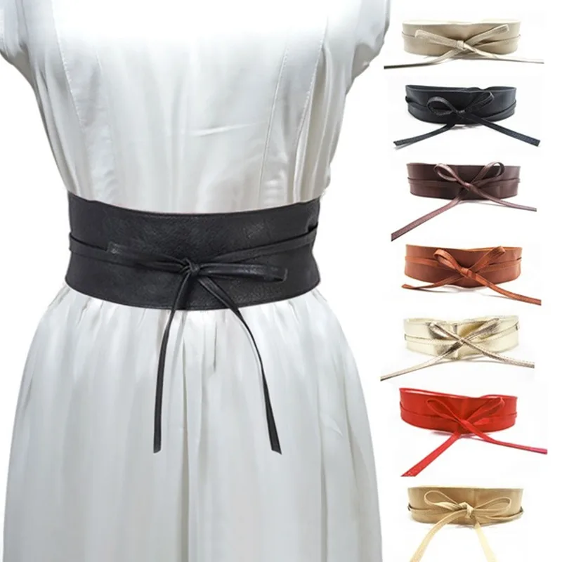 1 шт.; Модные; Сезон весна-осень; Для женщин и девушек, металлический Цвет мягкая искусственная кожа Широкий Пояс завязывается, обернутая Талия Mujer платье