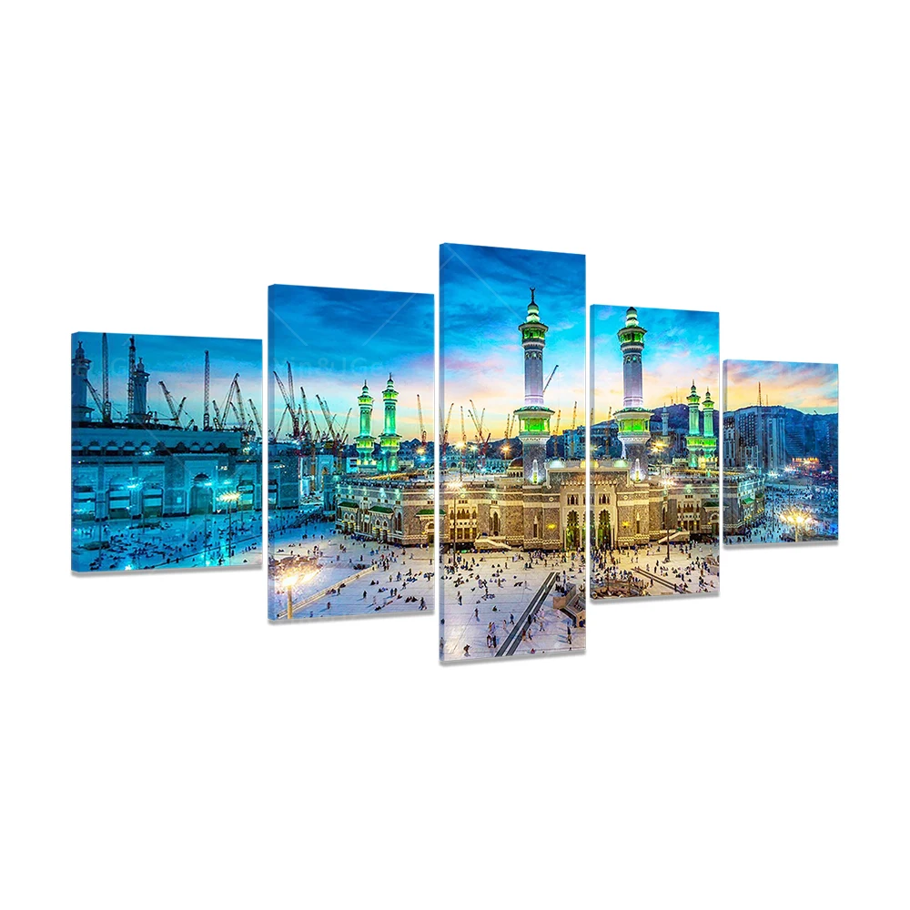 5 шт. Печать на холсте религиозные фотографии стены искусства мусульманских пейзажная живопись домашнего декора модульная плакат в рамке Гостиная
