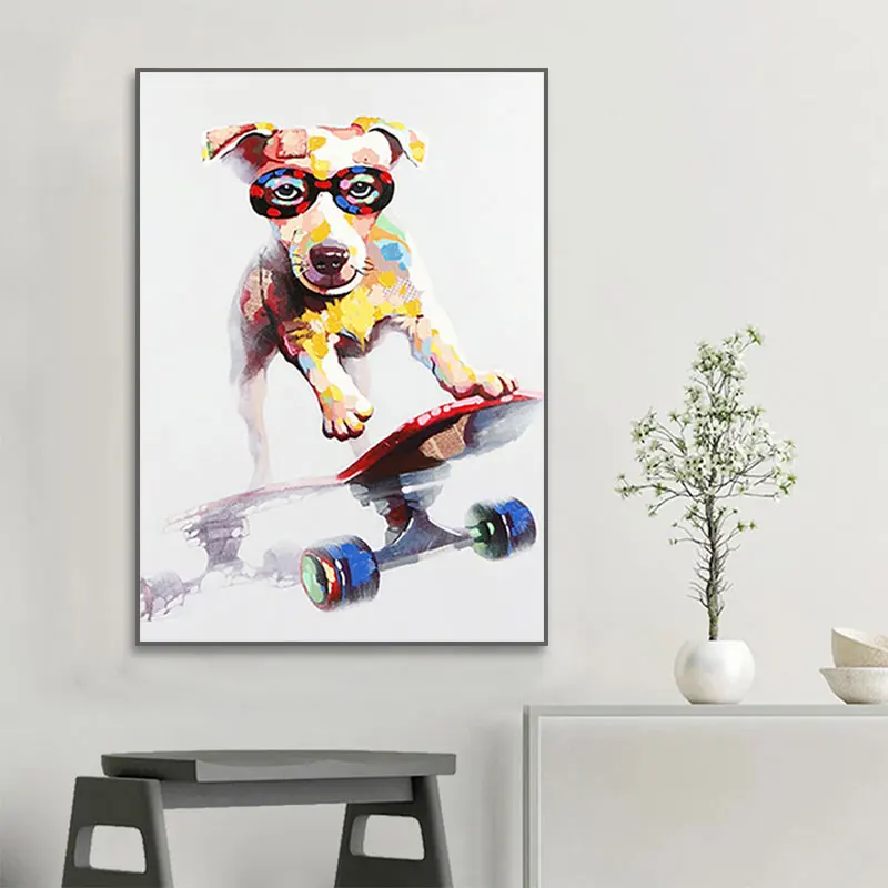 Скейтборд такса холст Картины очки плакаты с изображениями собак животных маслом печать абстрактная живопись искусство стены фотографии Домашний декор росписи