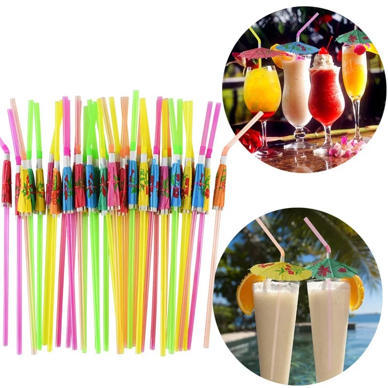 Соломинка для сока, тропический зонтик, фламинго, ананас, коктейль,...