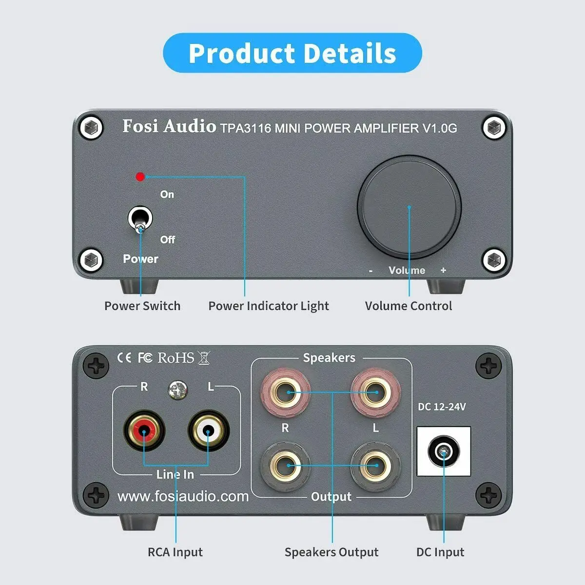 2-канальный стереоусилитель Fosi Audio TPA3116D2 класса D 50 Вт X 2-V1.0, усилитель мощности для домашних пассивных динамиков