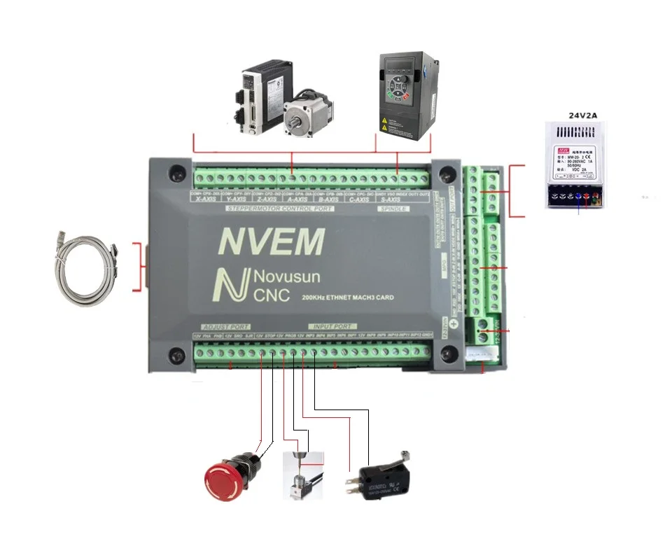 NVEMV2.1-это 3-6-осевой контроллер движения, который мы потратили 4 года на разработку. NVEMV2.1 Поддержка программного обеспечения Mach3 и стандартного MPG, через Ethernet для Общайтесь с компьютером, просто используйте шпагат для прямого подключения или передачи с роутером. Контроллер движения NVEMV2.1 имеет конструкцию рычага. Конструкция рычага Включает связь, кодеаналитический, базовый алгоритм и импульсную гернерацию. Рациональный Дизайн, надежное управление, удобное управление.