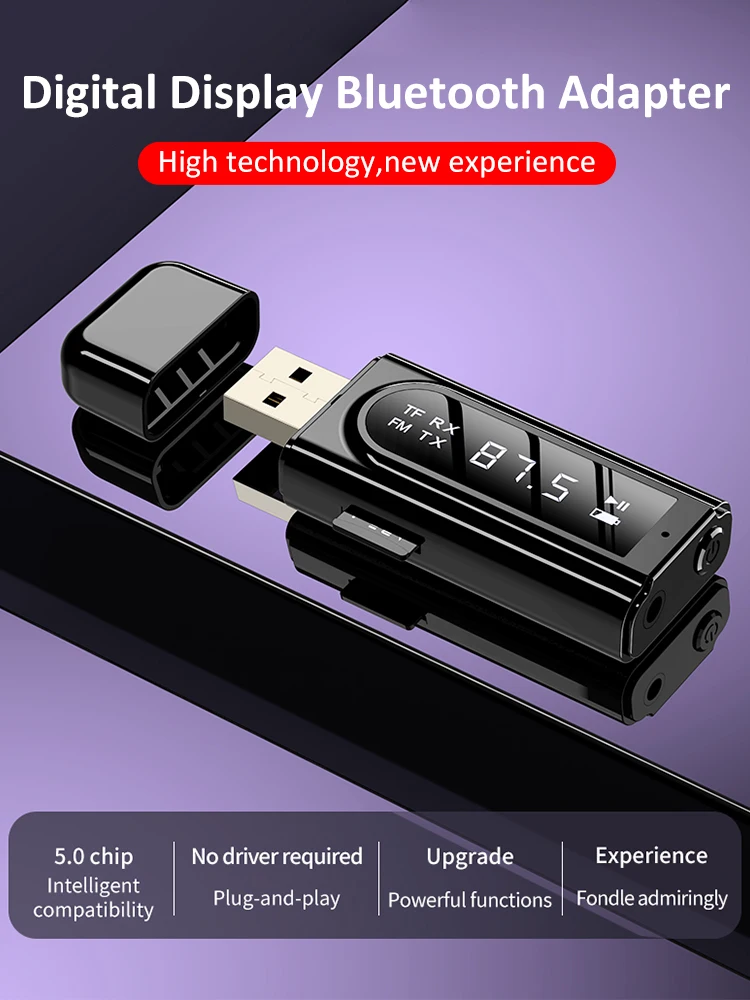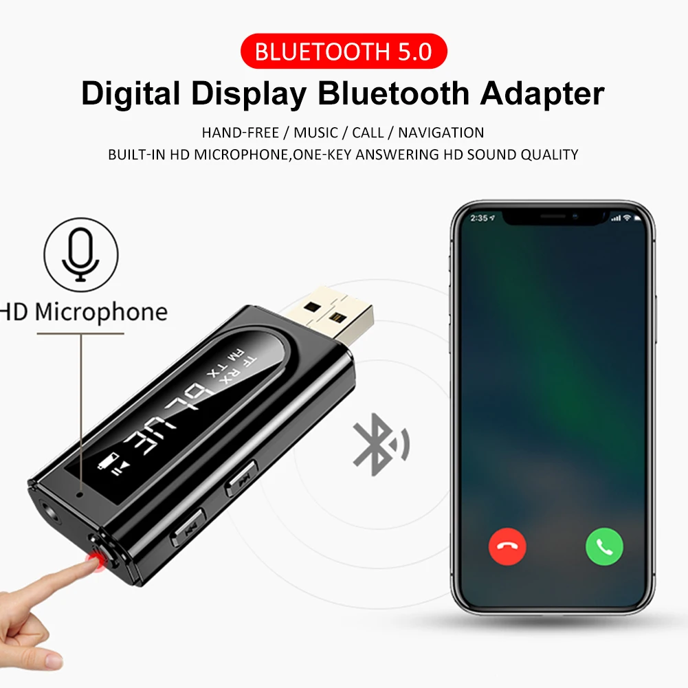 Приемник Bluetooth 5,0, Автомобильный светодиодный передатчик, FM-модулятор, кардридер, аксессуары для ноутбука с микрофоном, звонки без помощи рук, 3,5 мм