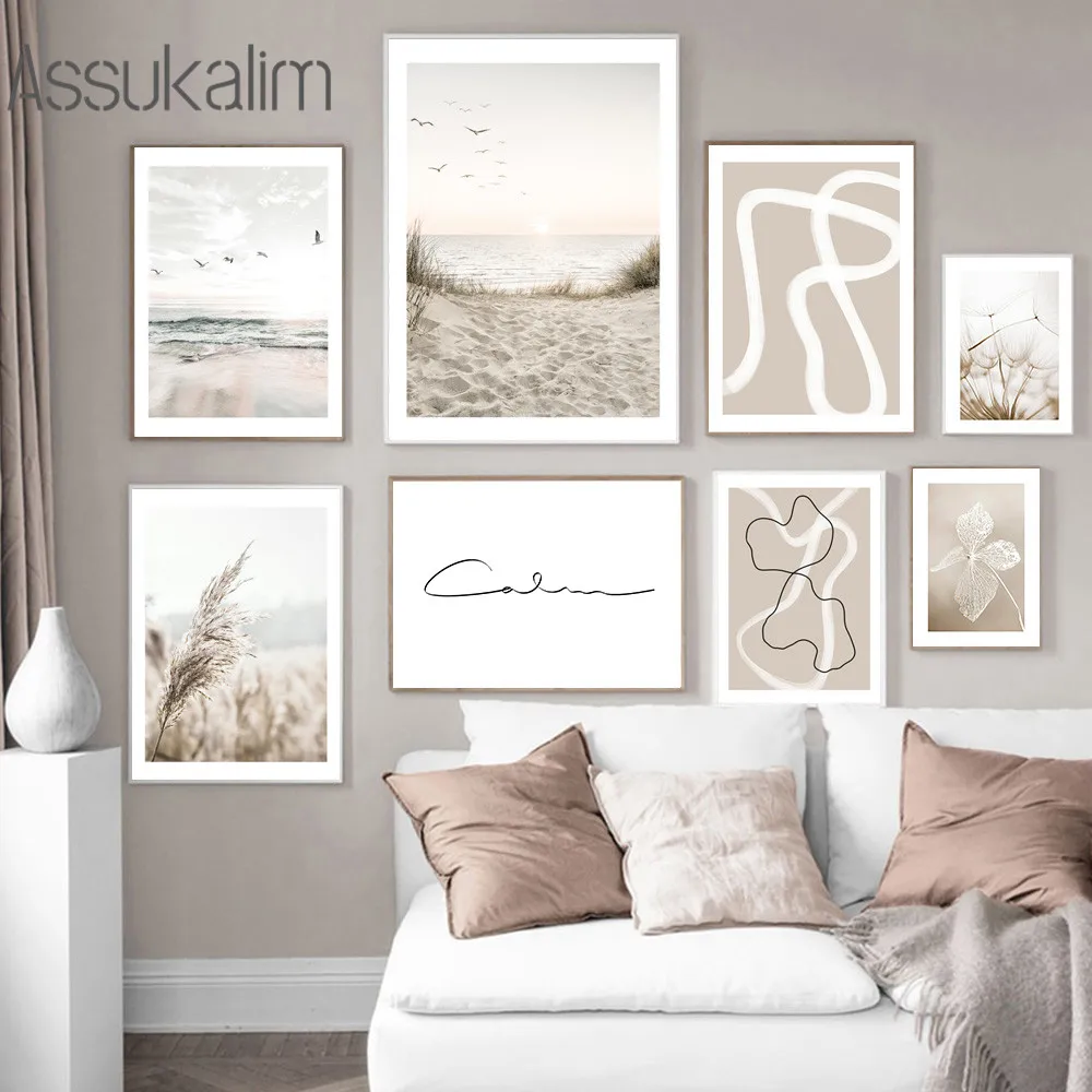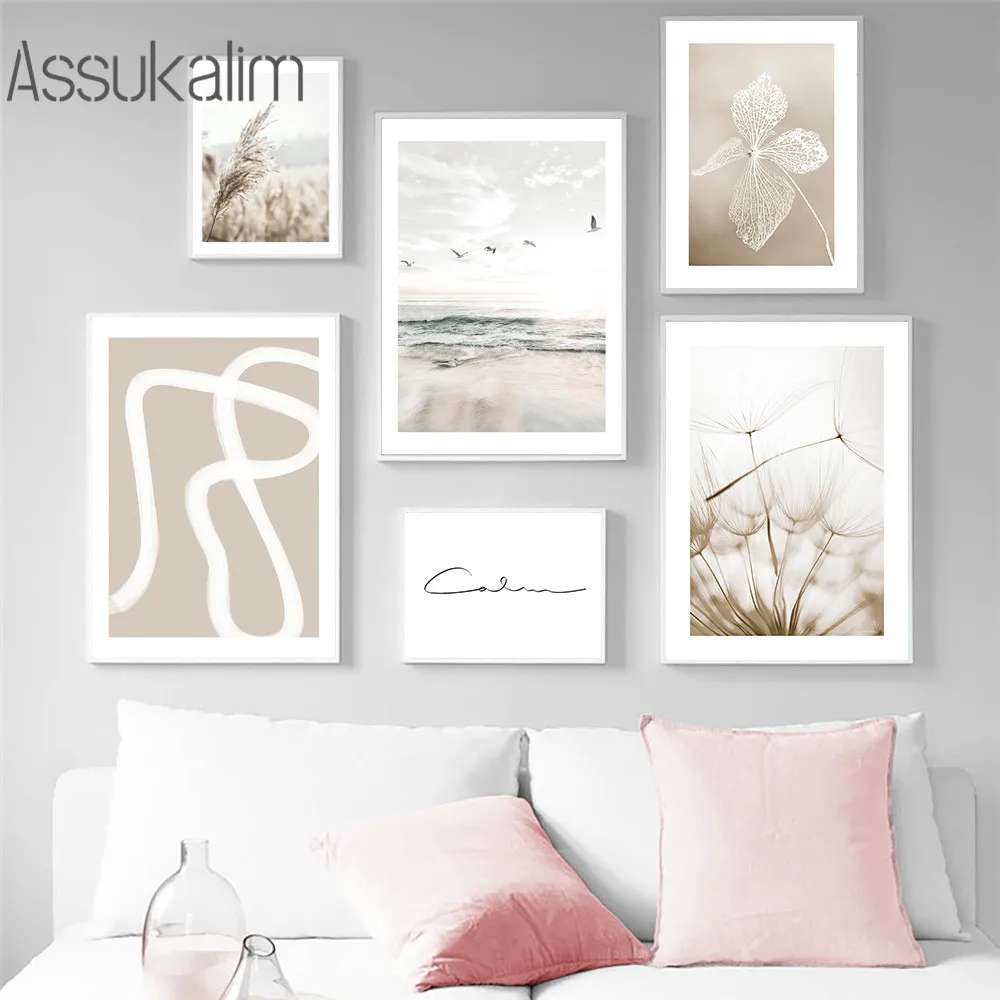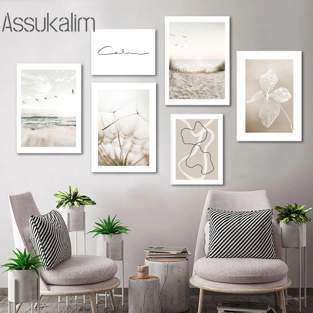 Пляжный Пейзаж, холст, живопись, Язычковая печать, абстрактная линия, плакаты с одуванчиком, скандинавские настенные картины для декора гостиной
