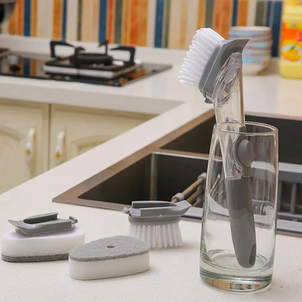 2 в 1 ложки с длинной ручкой, Кухня Чистящая щетка Скраб тарелка губка для мытья автоматический дозатор жидкого мыла Кухня горшок инструмент для очистки