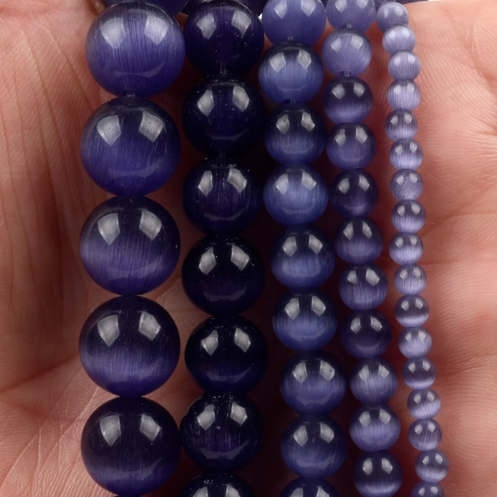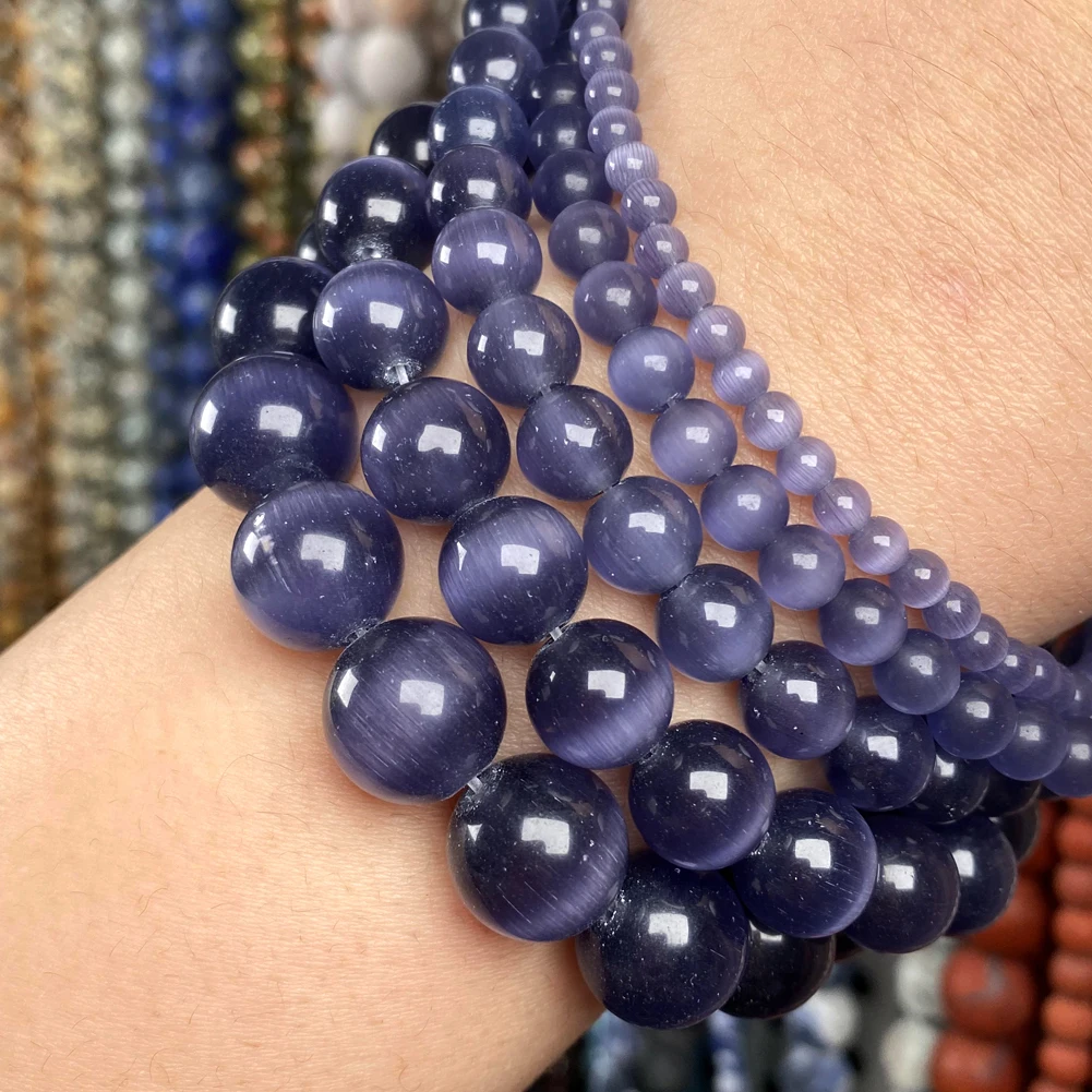 Натуральный камень, фиолетовый кошачий глаз круглые свободные бусины прокладка для изготовления ювелирных изделий Diy браслет ручной работы очаровательные аксессуары 4-12 мм 15''