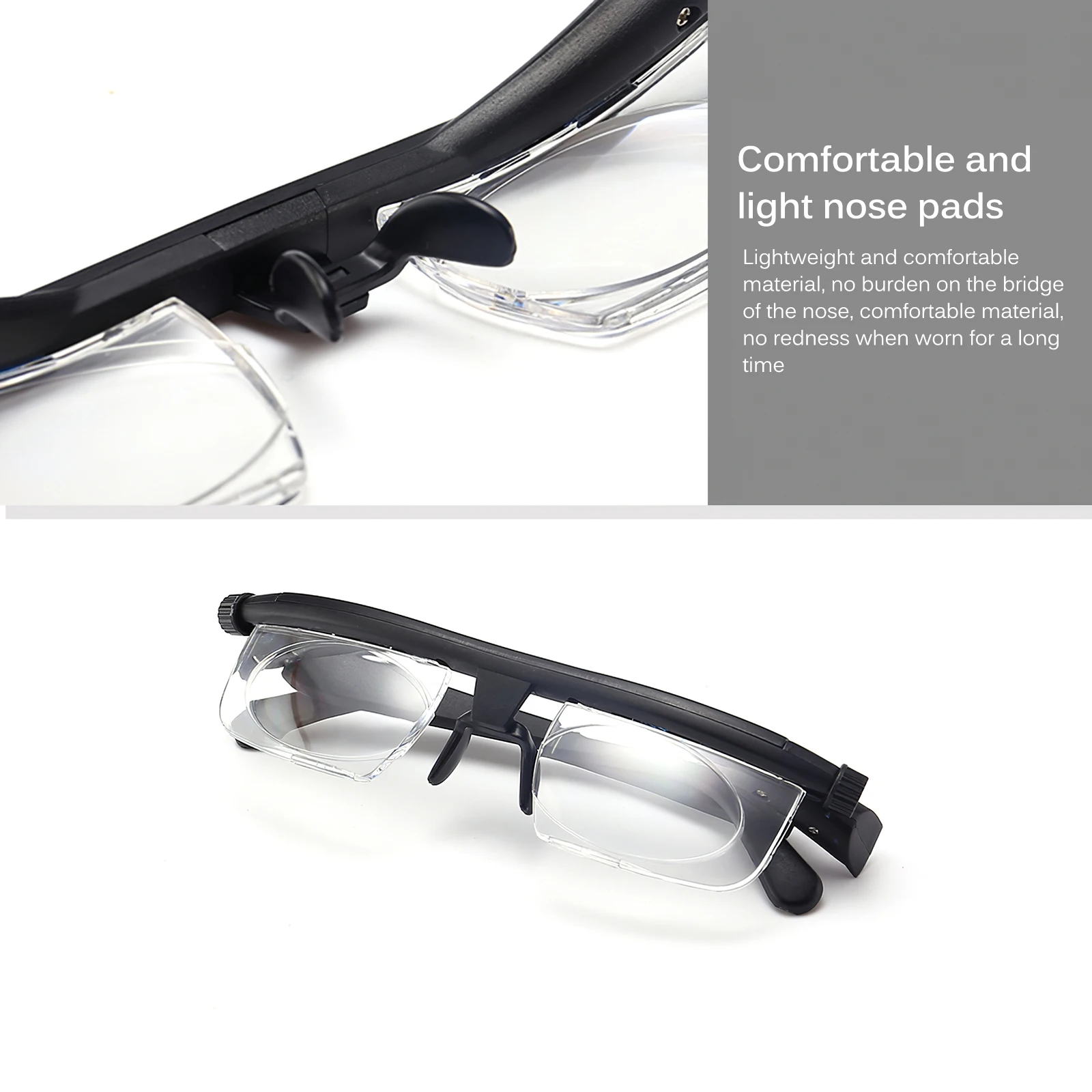 Особенности: Регулируемые увеличительные линзыВолшебные очки с регулируемым рецептом и увеличением, чтобы удовлетворить ваши точные потребности. Поверните циферблат, чтобы настроить, чтобы четко видеть только один удобный продукт, удовлетворяющий потребности большинства пользователей. Широкий диапазон регулировкиКаждая цель имеет диоптрий в диапазоне от-6,0 до + 3,0, что дает вам точный контроль над увеличением. Переменные случаиОтличный компаньон для повседневных задач и мероприятий, таких как вождение, чтение или просмотр телевизора Стильный дизайнКлассный, стильный и унисекс дизайн с частичным ободком делает его хорошим аксессуаром для ежедневного использования на открытом воздухе. Прочный материалПродукт использует высококачественный пластик, который делает ударопрочные линзы, придавая им хорошую прочность и долговечность. Характеристики:Тип: Универсальные очки для близорукостиКоличество: 1 шт.Материал: пластик + смолаЦвет: черныйРазмер посылка: 170*80*40 мм/6,68*3,14*1,57 дюймов (Д * Ш * В)Вес: 94 г/3,32 унций Посылка: