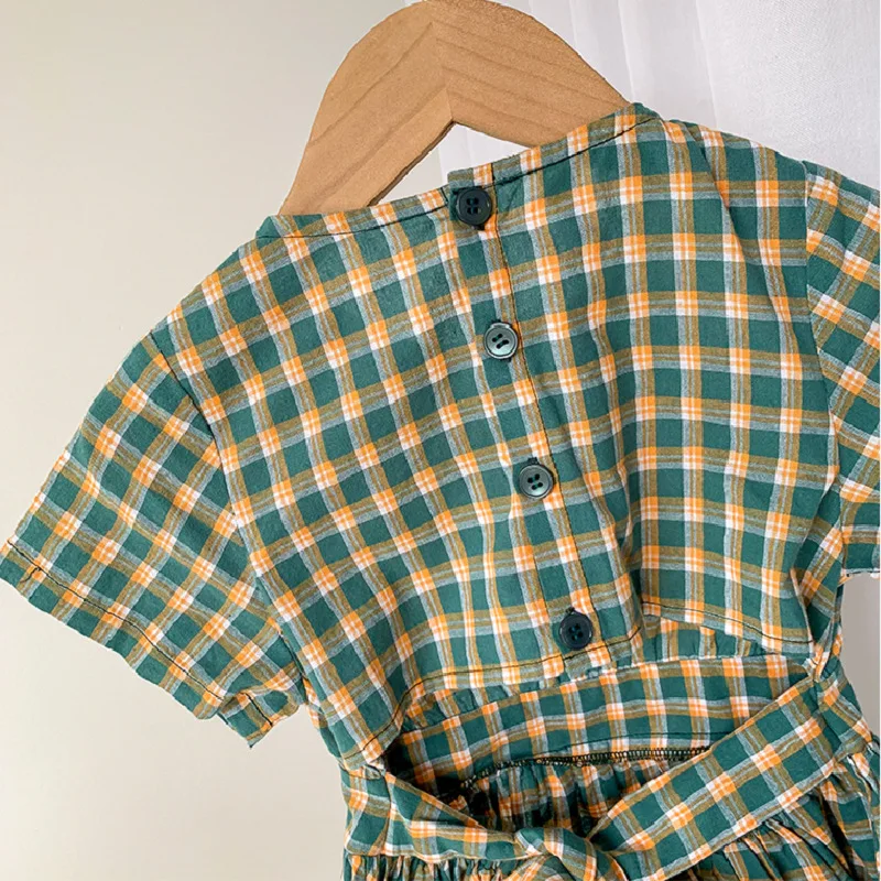 Клетчатое платье для девочек с поясом, платье принцессы, летняя новая детская одежда, платье принцессы, платья для девочек