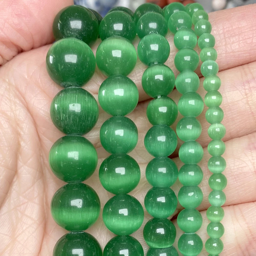 Натуральный камень зеленый кошачий глаз круглые свободные бусины разделитель для изготовления ювелирных изделий Diy браслет ручной работы Шарм аксессуары 4-12 мм 15''