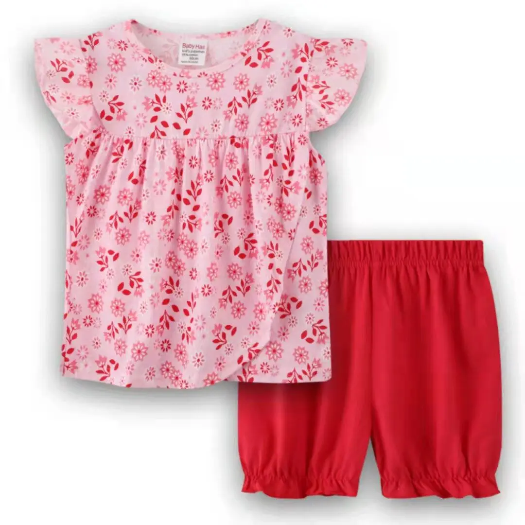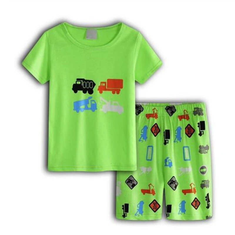 Летняя Детская Пижама, одежда для маленьких мальчиков, Хлопковая пижама, Детская футболка + шорты, 2 шт., Мультяшные пижамы для девочек и мальчиков, комплекты одежды для сна