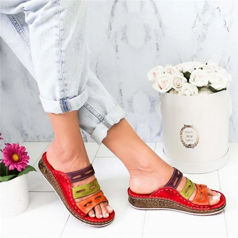 Jodimitty 2021 Новинка; летние женские сандалии 3 Цвет шить сандалии женские туфли на высоком каблуке с открытым носком; Повседневные туфли-танкетки на платформе шлепанцы пляжная обувь
