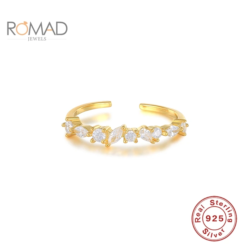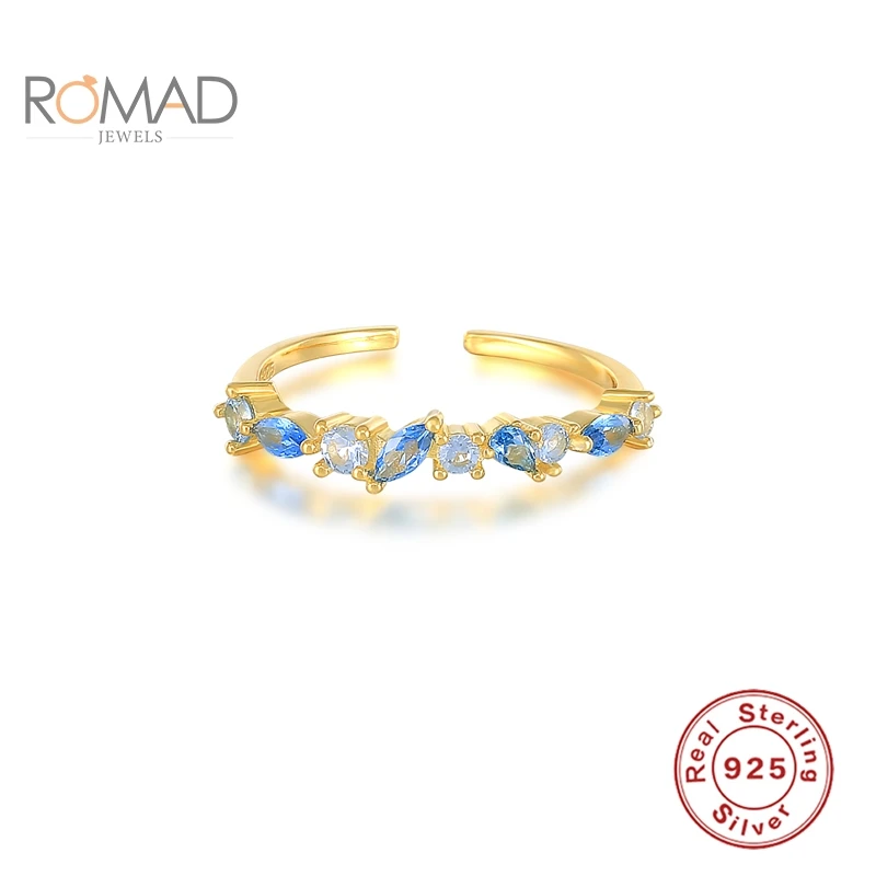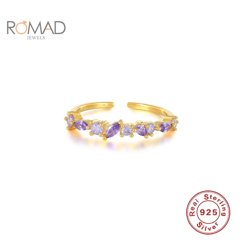 ROMAD зеленый фиолетовый Bllue циркониевые кольца для женщин 925 пробы серебряные кольца на палец 2021 новые золотые ювелирные украшения Anillos Mujer
