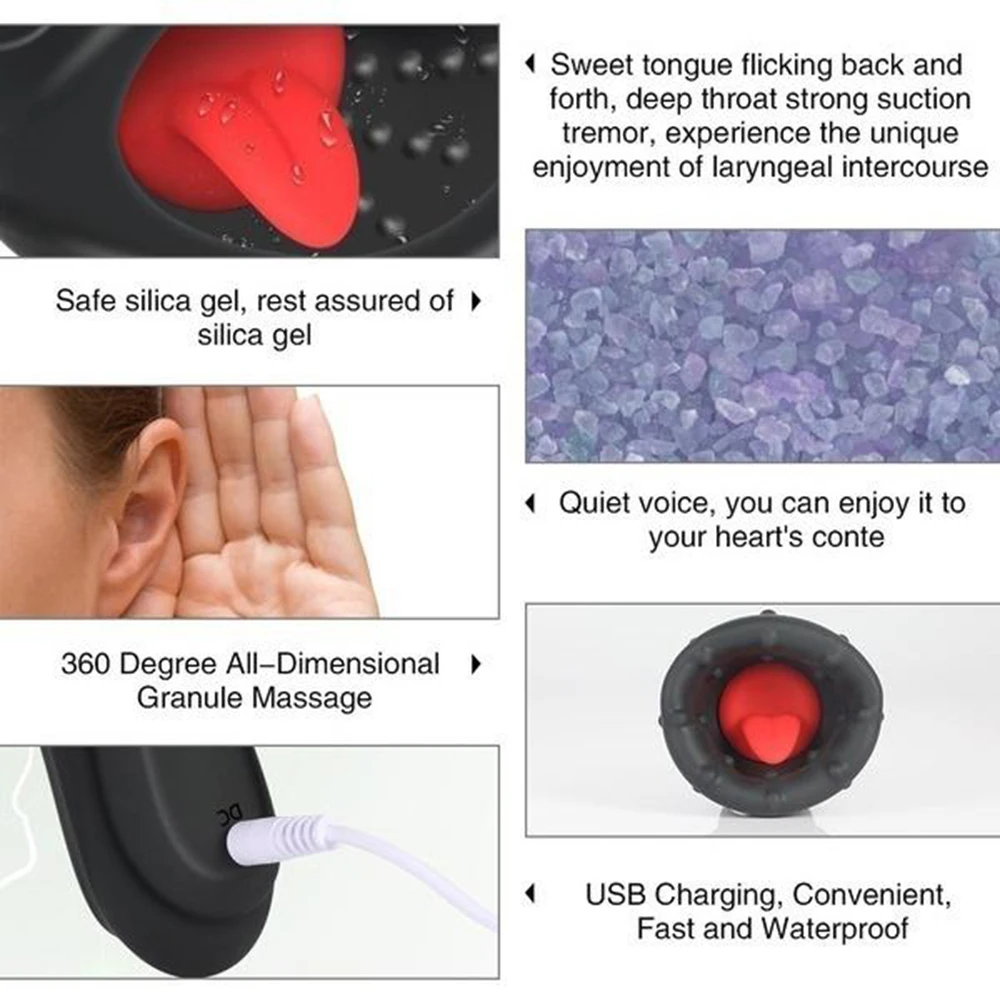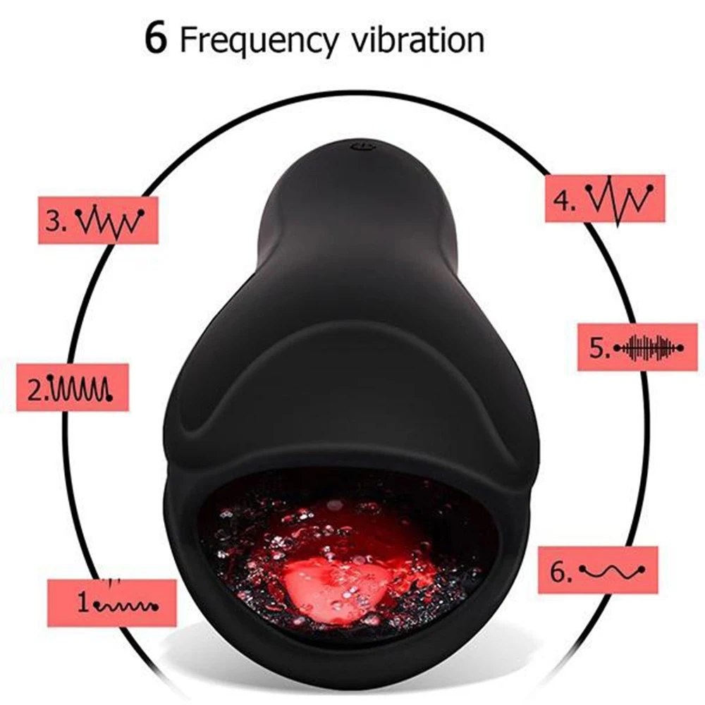Мужской мастурбатор 6 частотный, автоматический насос для пениса, вибратор, мягкая киска, лизание языка, массажер для глаз, интимные игрушки для мужчин