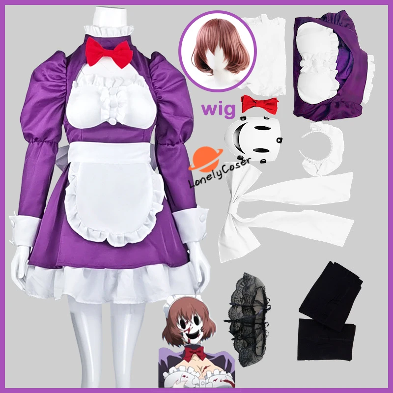 Костюм горничной из аниме вторжение на высоте, костюм для косплея в стиле fuku Kamen, костюм горничной с коричневым париком, фиолетовый костюм, чехол для лица для Хэллоуина, вечеринки для девушек и женщин