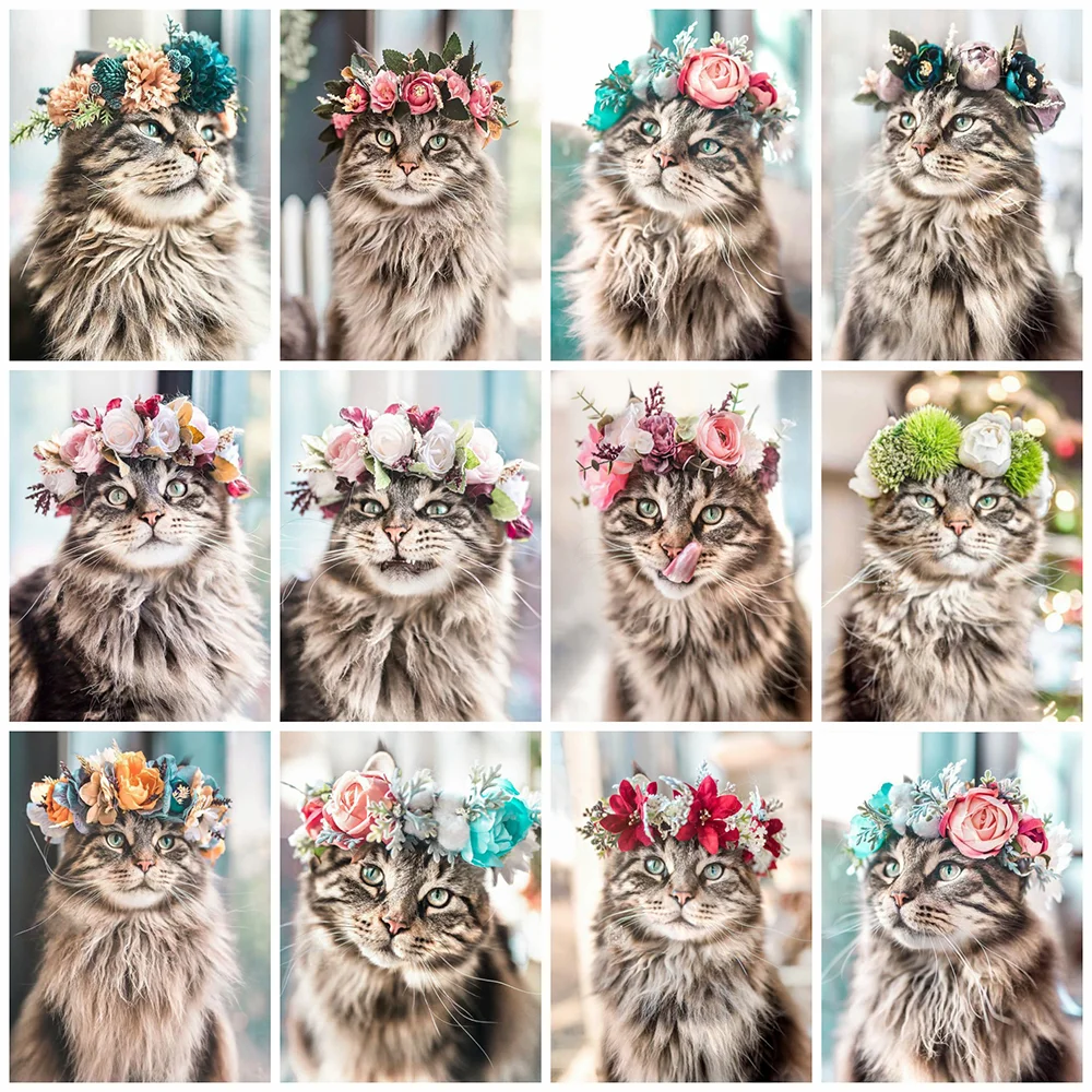 Evershine Алмазная мозаика кошка Алмазная живопись цветок полная площадь Алмазная вышивка распродажа животные вышивка крестом наборы украшения для дома