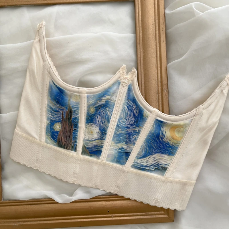 Винтажный художественный принт с изображением ангела, сексуальный корсет с эффектом пуш-ап под грудью, бюстье, утягивающий живот, короткая укороченная длина.
