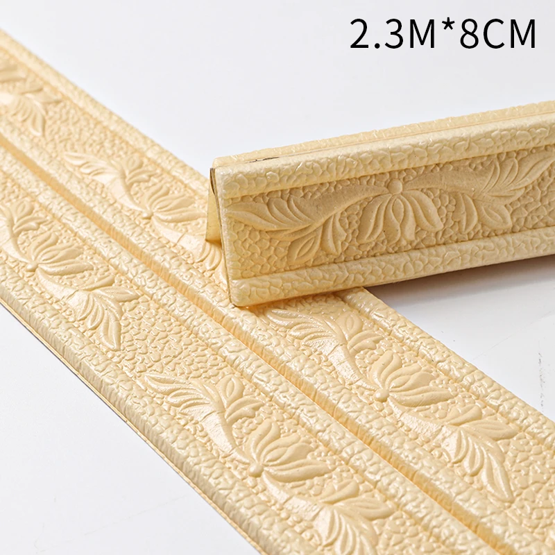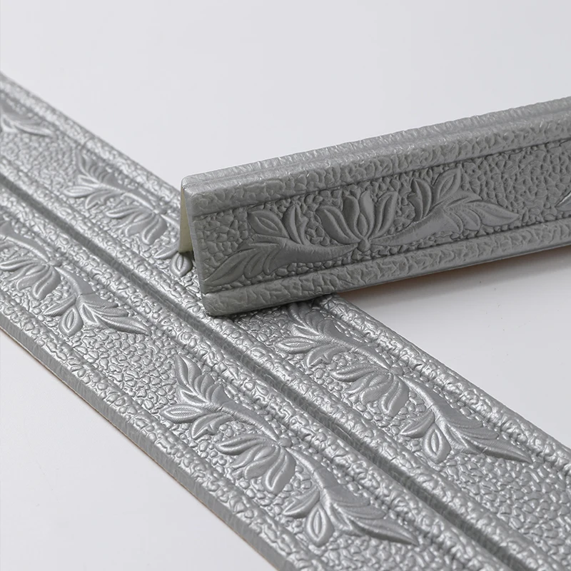 Описание:* Материал: Пена из ПВХ* Размеры: около 2,3 м в длину и 4,8 см в ширину, сидениями толщиной 6 см* Цвет: серый, серебристый, золотой, коричневый, белый* Применимая сцена: подходит для фоновой стены, плинтуса, украшения балкона, фоновой границы, дверной рамы и украшения подоконника, ремонта стен и т. д.* Характеристики: Водонепроницаемость и влагостойкость, защита от сжатия и столкновений, простота в использовании с клеем, легко украсить стену.* Самоклеящаяся 3D стерео Наклейка на стену из пенопласта, лента на талии, кромкооблицовочная рамка для защиты от столкновений, водонепроницаемая плинтус.