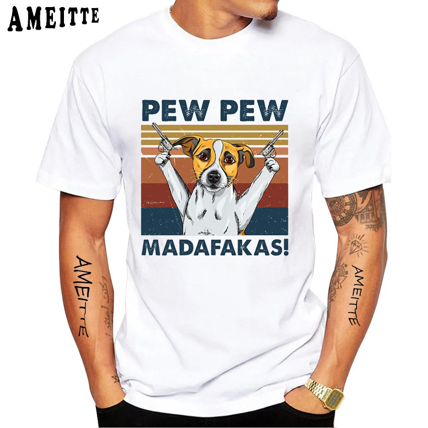 Футболка мужская с коротким рукавом, Классическая, в стиле хип-хоп, с принтом Джека Расселла Pew, забавная Повседневная Дизайнерская одежда для мальчиков, белый цвет, лето