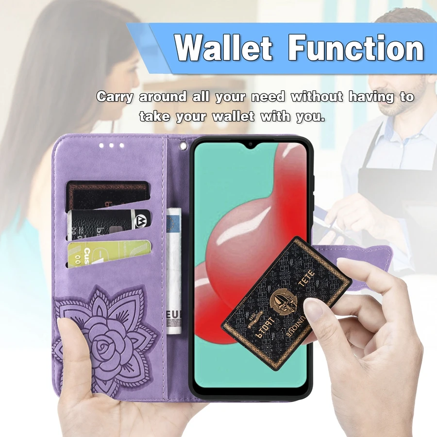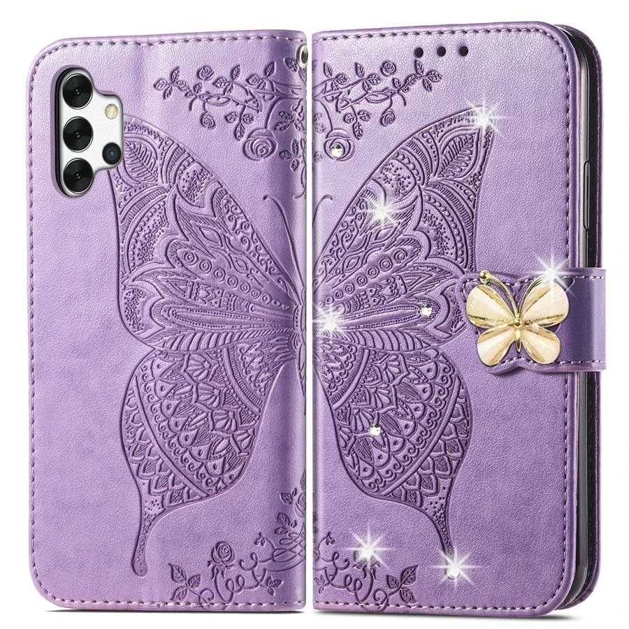 Кожаный чехол-бумажник с бабочками и цветами для Samsung Galaxy A03S, A12, A13 2022, A32, A50, A51, A52, A71, A72, S22, S21, S20 Plus Ultra FE, S10