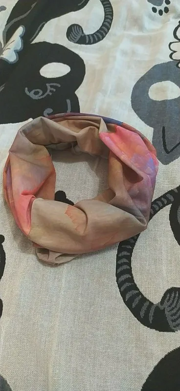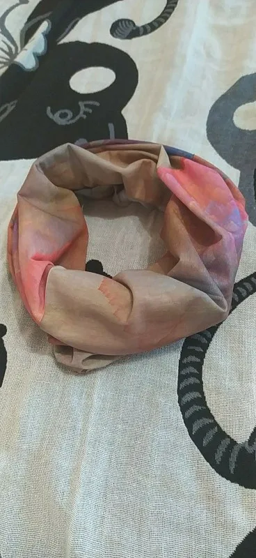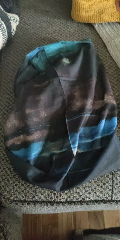 штука хорошая, использовал и как шарф и как шапку на рыбалке. тонкая ткань.тянется.
