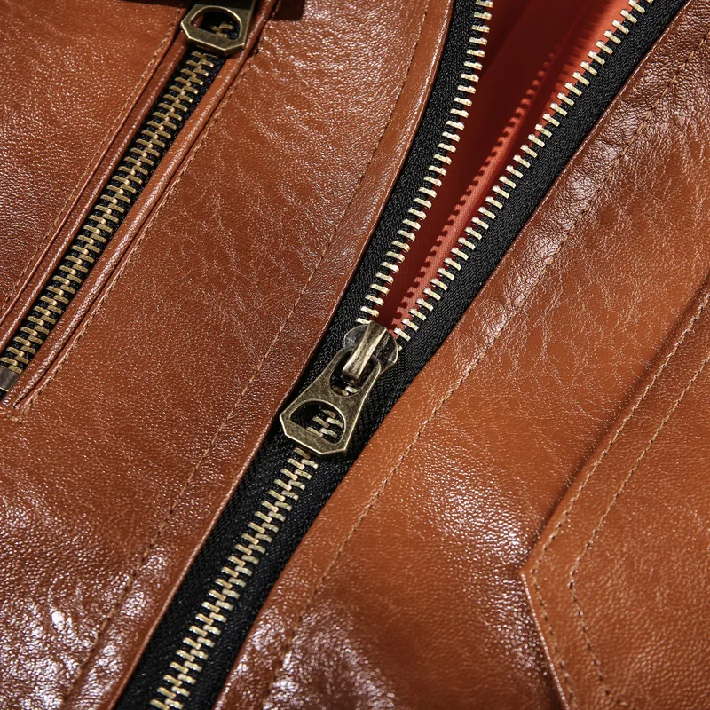 Мужская кожаная куртка-бомбер, коричневая повседневная куртка из ис...