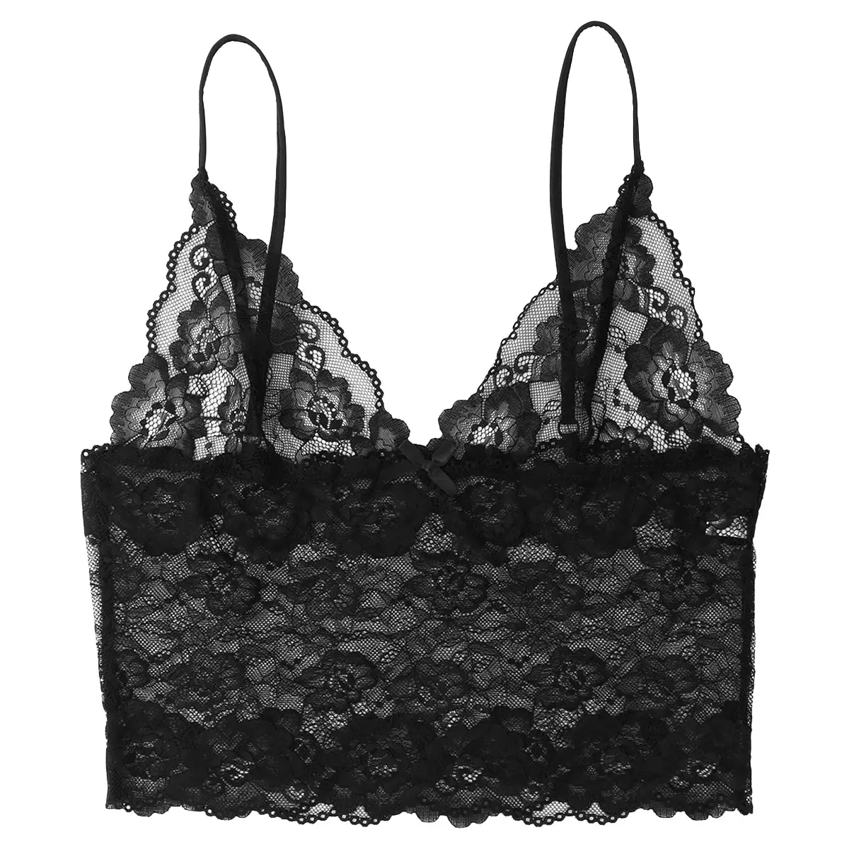 Прозрачный кружевной дизайн, регулируемые бретельки-спагетти и глубокий v-образный вырез, длина средней части.